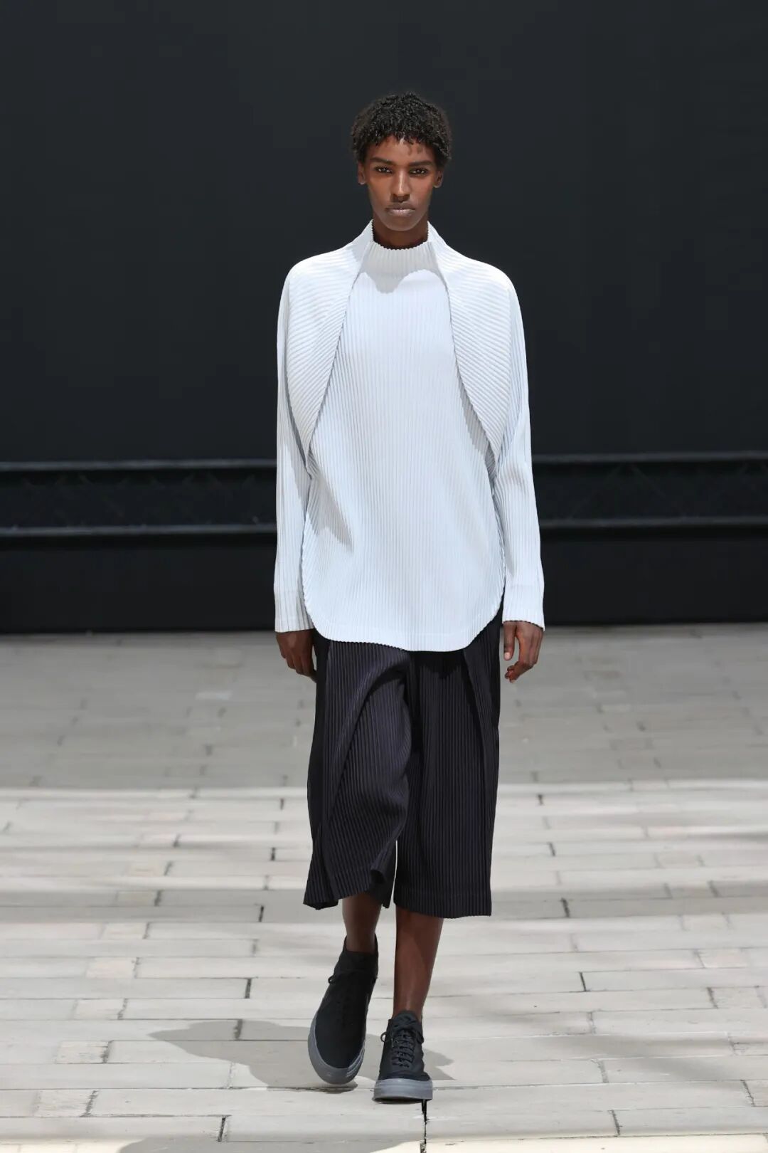 近藤悟史是Issey Miyake现任的设计师,Homme Plissé Issey Miyake 2023春夏男装是他最新的发布。这一季近藤悟史从花朵与花瓶获得灵感,让弯曲、笔直的褶皱探索在花卉和花瓶、花蕾到花开之间。
