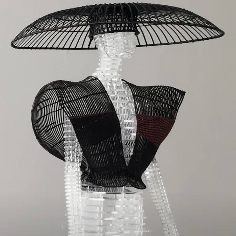 VASE系列的上装和大衣可以被折叠成平坦的圆形,它们的灵感来自于从瓶颈到瓶身曲线渐变的开口器皿。