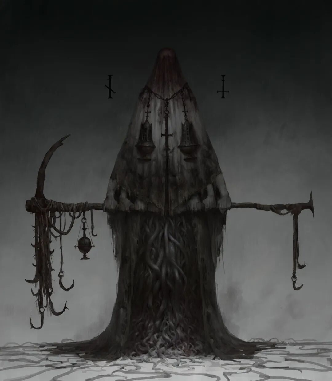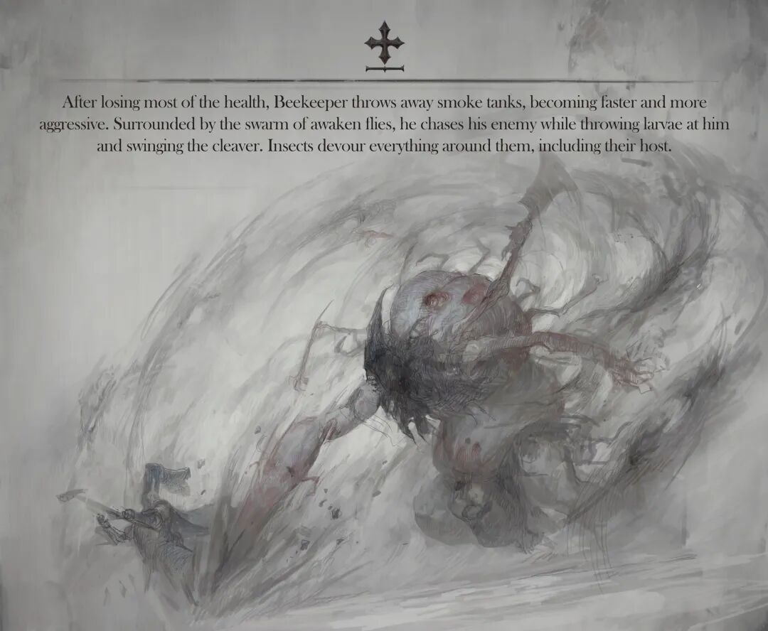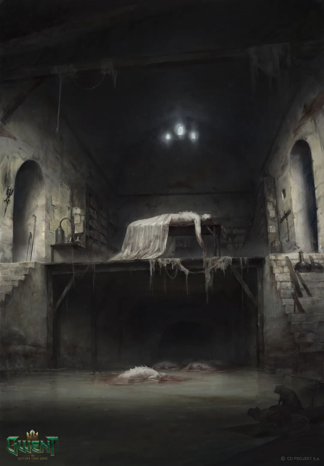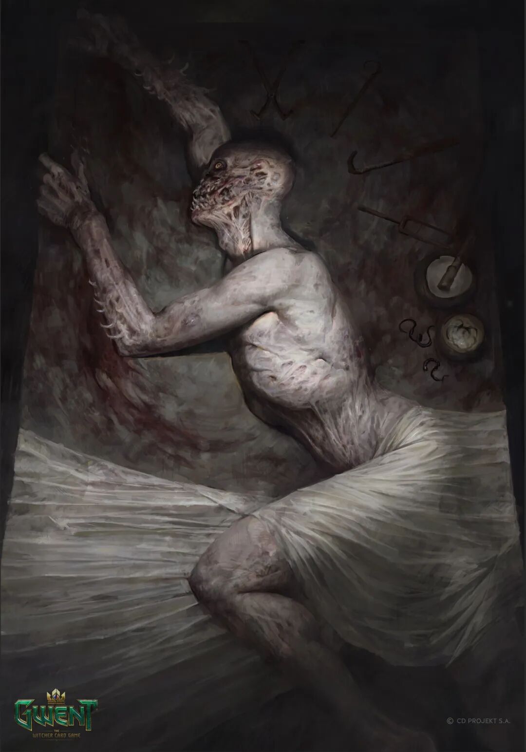 Bogdan Rezunenko曾为《昆特牌》创作过一些插图,他并不一味地堆砌各种恐怖元素,也不会以大面积血腥来刺激感官,而是恰到好处地添加令人细思极恐的细节,画面视觉重点明确,以整体氛围来营造恐怖气息,看久了是真的感觉阴风阵阵!