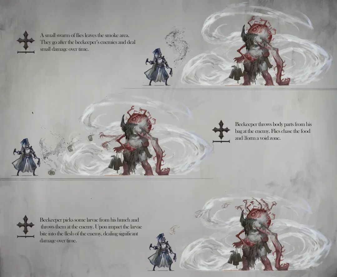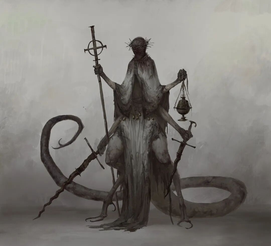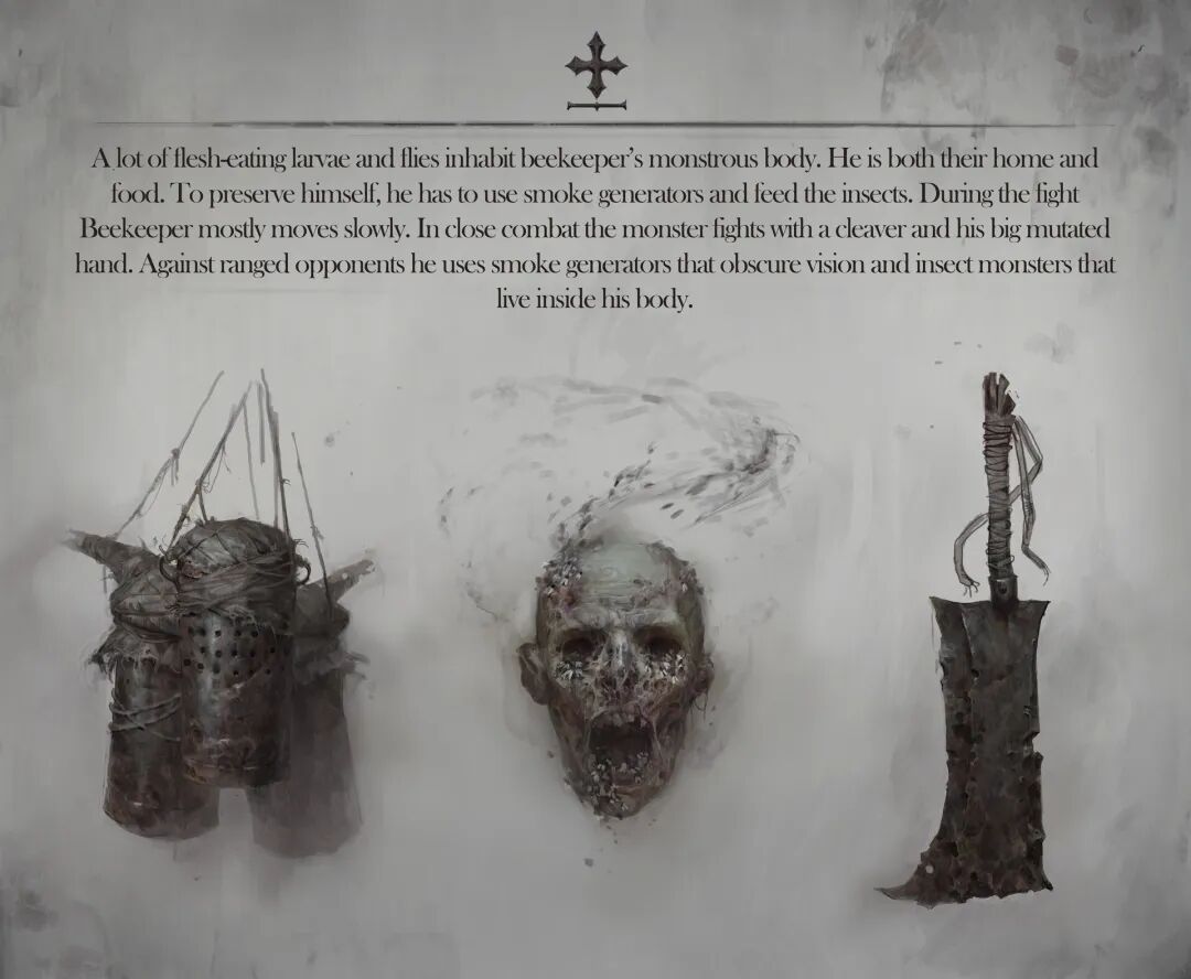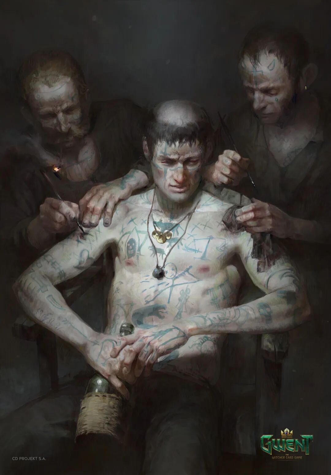 Bogdan Rezunenko曾为《昆特牌》创作过一些插图,他并不一味地堆砌各种恐怖元素,也不会以大面积血腥来刺激感官,而是恰到好处地添加令人细思极恐的细节,画面视觉重点明确,以整体氛围来营造恐怖气息,看久了是真的感觉阴风阵阵!