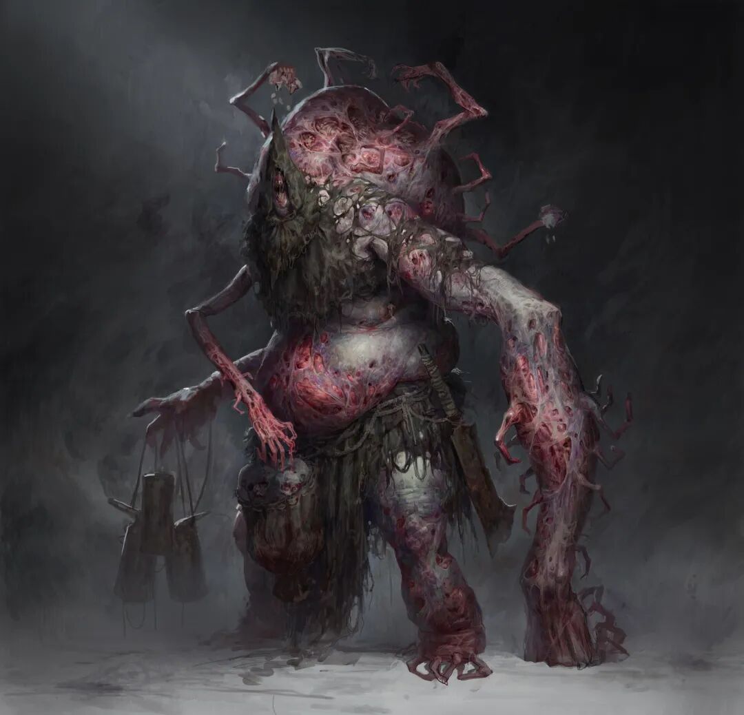 现居格鲁吉亚的概念艺术家、插画师,作品以形状怪异让人感觉SAN值下降的暗黑系风格为主,色调阴冷造型别致,对于细节的处理放大了惊悚诡异的氛围。