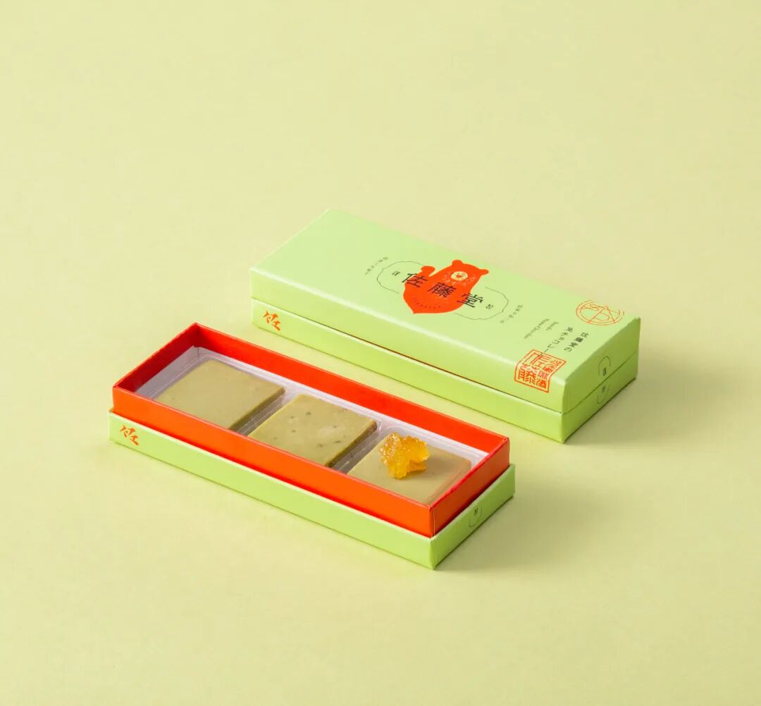 招牌商品Kuma Monaka也是以北海道民间工艺品“木雕熊”为主题设计的,因为这个熊的符号象征能让人很容易记住佐藤堂。可爱的小熊招招手,温暖治愈地欢迎和欢送每一位光临的顾客。