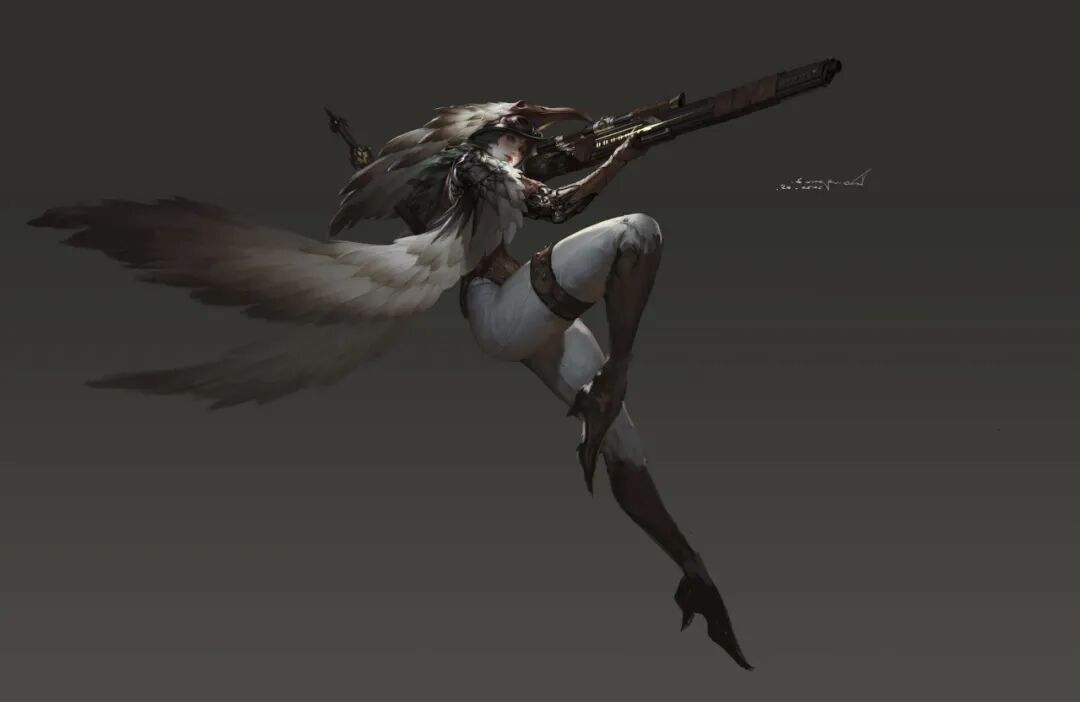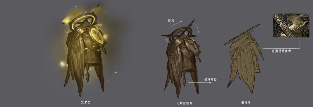 后来又去上班,参与《黑暗之潮》,做套装、时装、翅膀啥的设计,同事都是大神,学习的机会比较多,也学到了很多。目前在做一个原创IP的概念设计,希望到时候大家能喜欢。