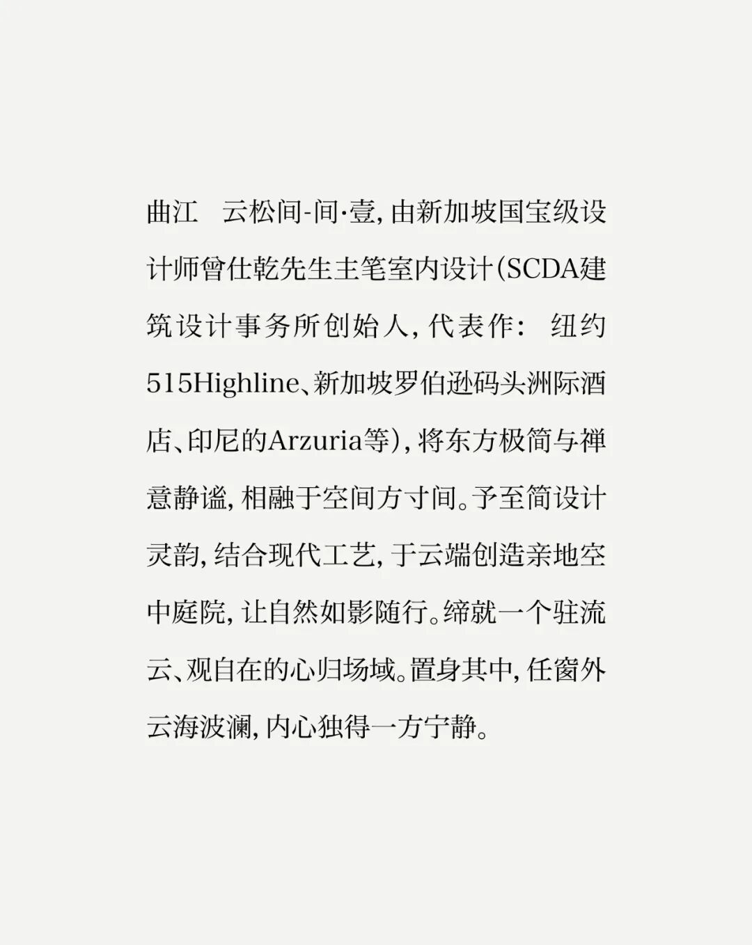 “无论东方还是西方,只要能呈现最符合当代人的生活方式,就是符合国际审美的设计。曲江 云松间亦是如此,以极致静谧的东方设计,营造出最国际的生活空间,就这一点而言,它便是有着世界审美的。”