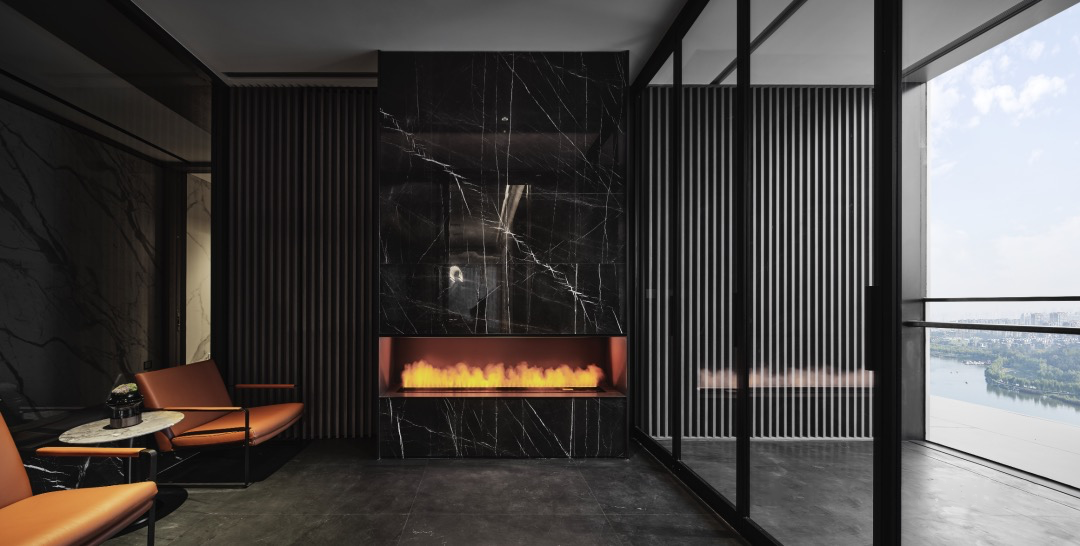 于是曾仕乾将二者结合,在云端注入合院情怀,而后引自然入室,这处416㎡创新型空中合院取名为「间」,以一方灵秀天地对抗城市的喧嚣。