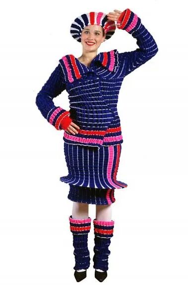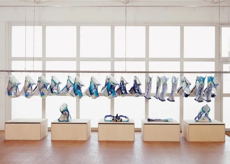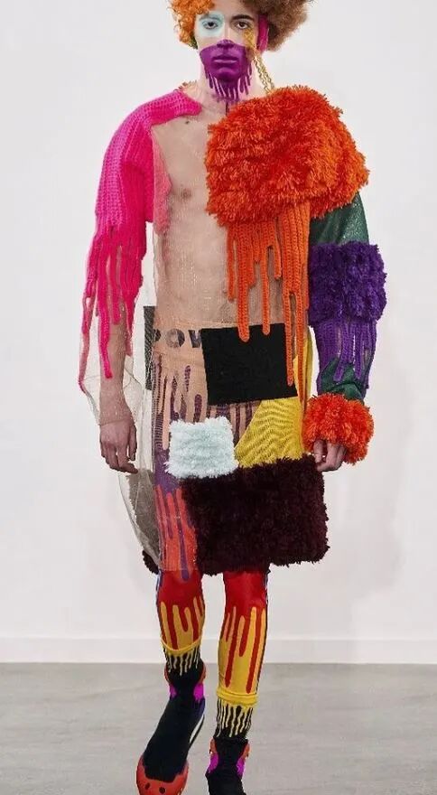 设计师在比利时根特的设计博物馆展出的针织作品展示出了她对材料与颜色的实验性创新,造型奇特,用色大胆却又令人舒适,整个作品具有一种和谐的幽默感,显示出了惊人的艺术功底。