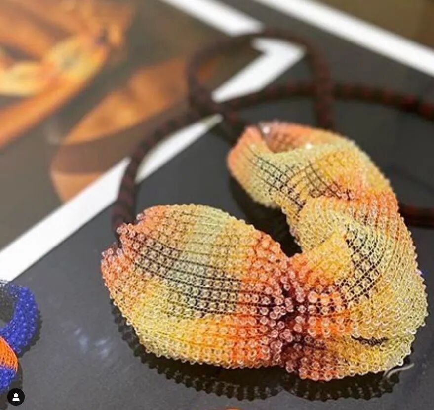 Cecile Feilchenfeldt 于2019年在慕尼黑 Biro 画廊展出了她的珠宝系列作品。丝带般的、具有动感的纺织品雕塑作品,颜色精美,这些作品都只由一根线和380根针构成,这根线贯穿整个首饰,形成了一张网,具有三维的立体效果,带有诗意性的创造力。