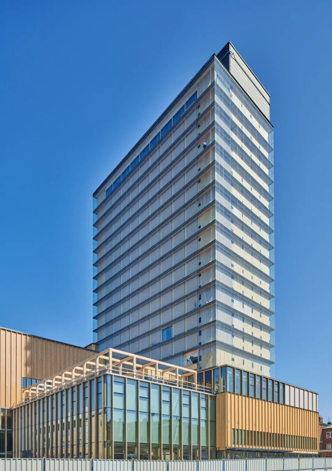 “我们进行了一系列分析图像,以了解这座建筑将如何与城市的其他高层建筑一起出现,”Ahlmark 说。“除此之外,我们还希望创建一个地标,有助于融入 Lokstadt 现有的高层建筑中。”