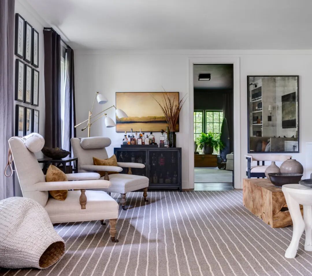 设计师Sean明白纳尔逊一家想要一个非常中性的调色板——因为他们更喜欢艺术品而不是家具。他们收藏了很多孟菲斯艺术家的作品:门厅中亚特兰大的Ashley Finnemore的深色钉钉画布,阿拉巴马州艺术家 McKenzie Dove在客房内的石膏作品,以及设计师也贡献了他自己的艺术作品,Sean偶尔也是一位艺术家。“这就是我的工作。通过艺术和物品讲述这些故事。”为了给艺术作品带来更大的影响,设计师将大多数房间漆成最浅的灰色。