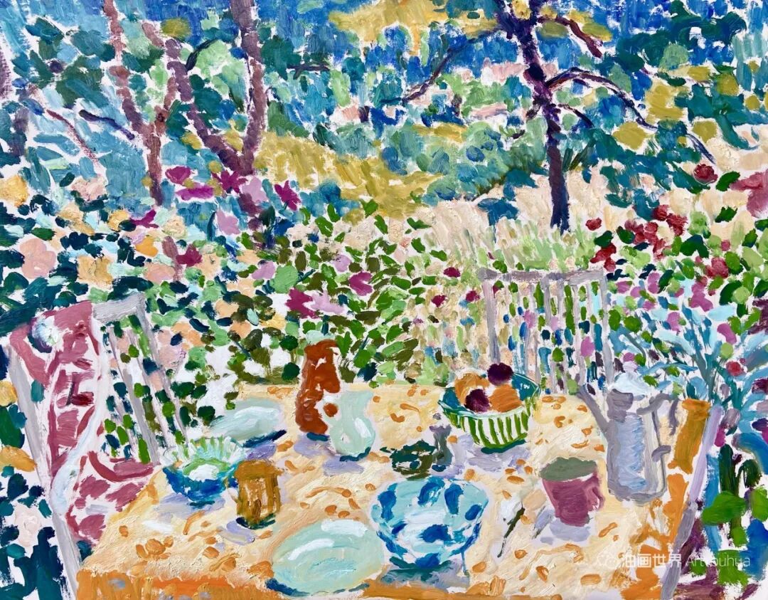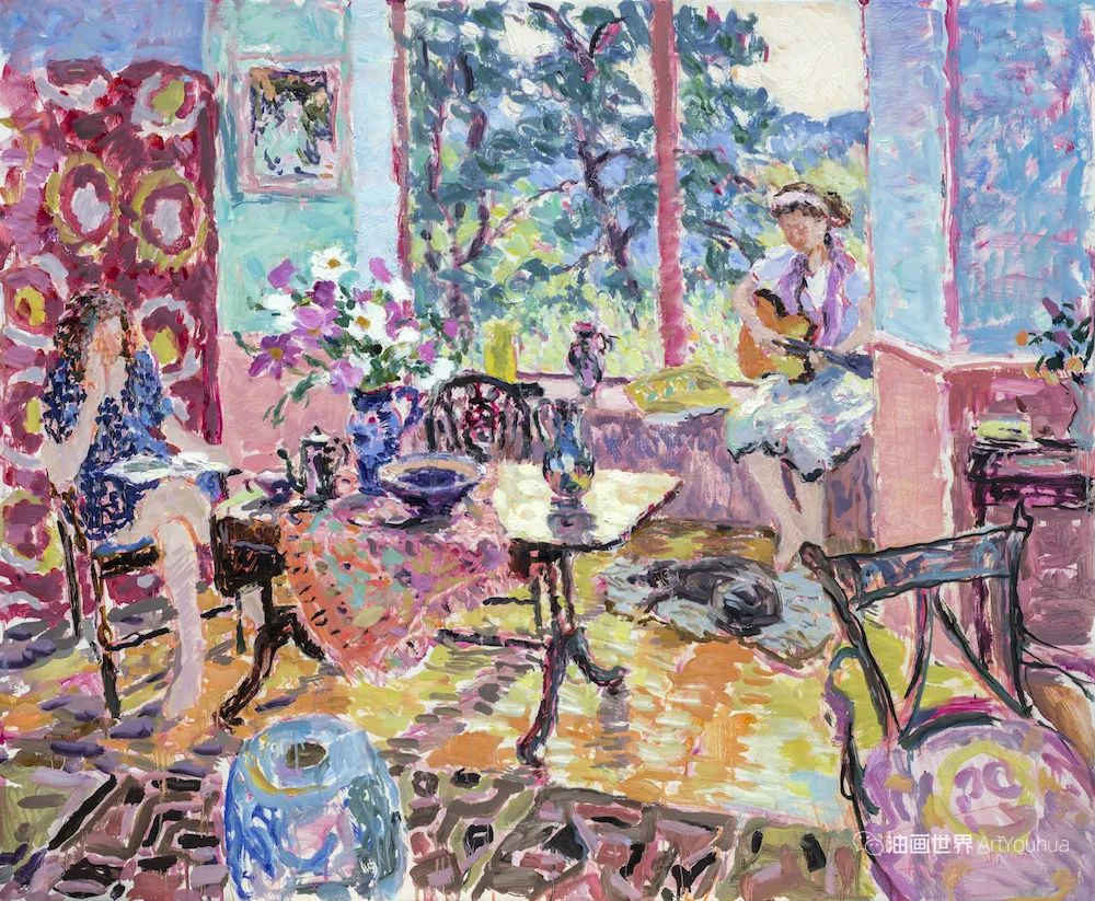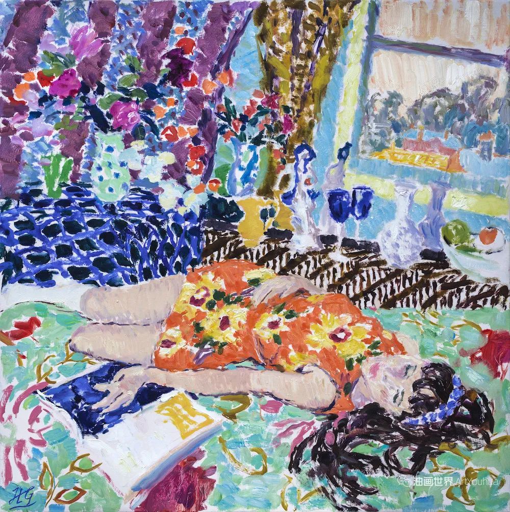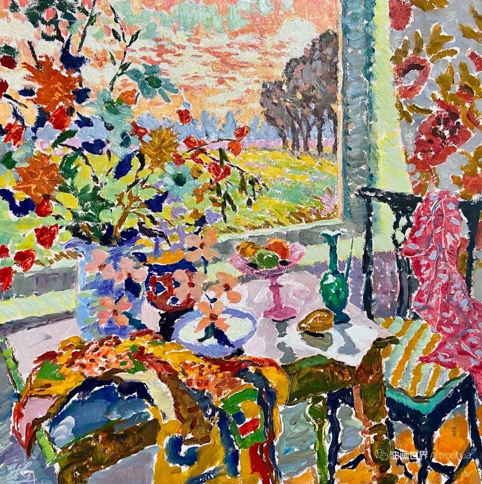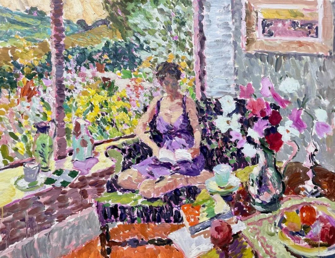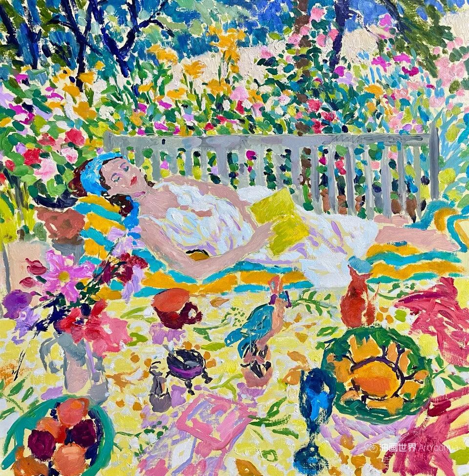 雨果·格伦维尔(Hugo Grenville, 1958-),英国著名浪漫主义画家。他出生于1958年,15岁时就有作品在伦敦切尔西艺术学会展出。他作为一名画家的职业生涯开始于1980年代后期,直到1999年他在巴黎的一个展览中亲眼目睹了野兽派的作品,他的作品才变得更加丰富多彩。他热爱波纳尔(Bonnard)、马蒂斯(Matisse)和帕特里克赫伦(Heron),他们的作品沉浸在一片斑斓的阳光中。