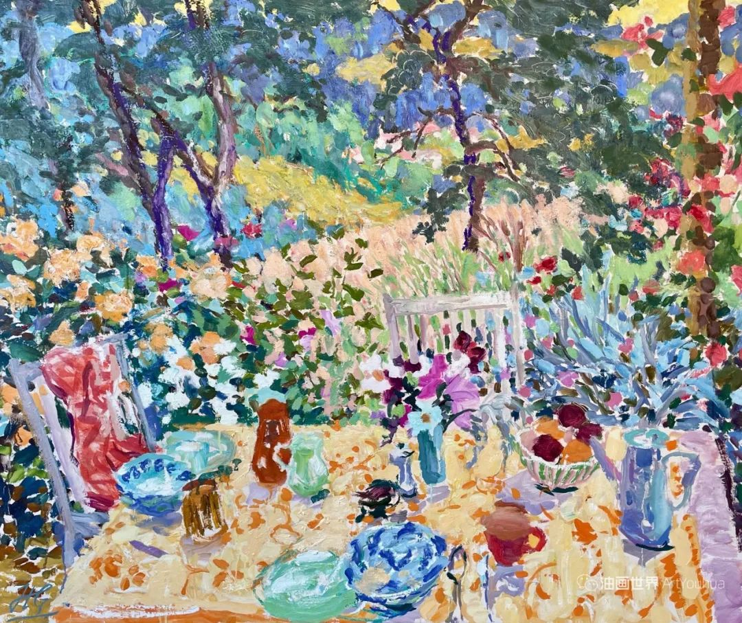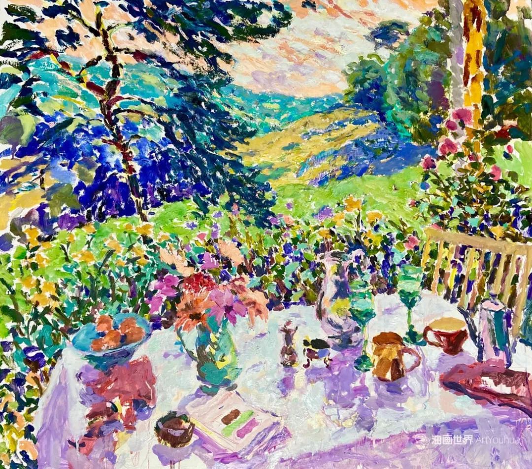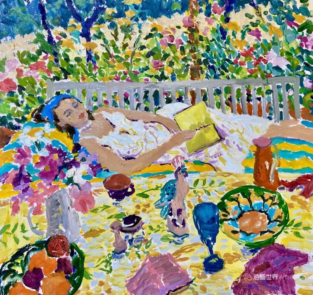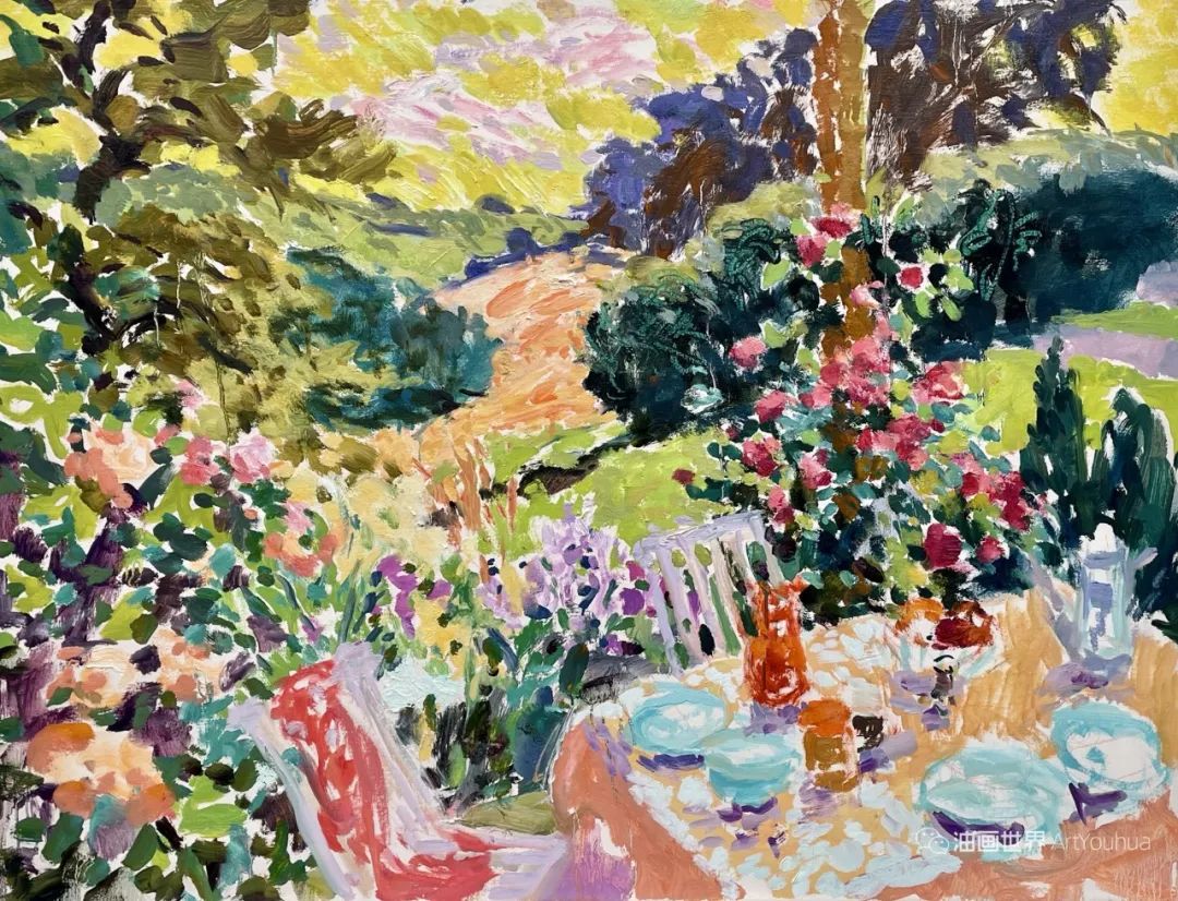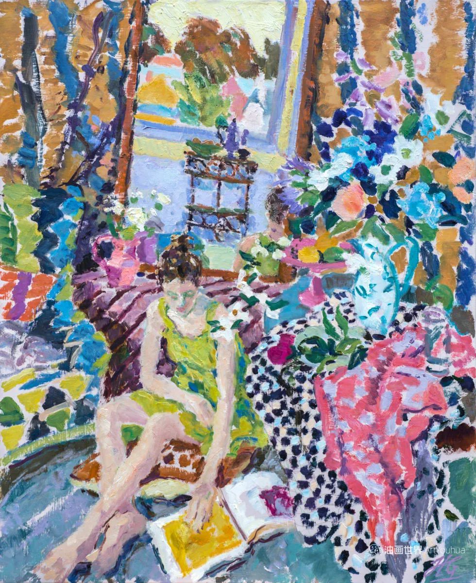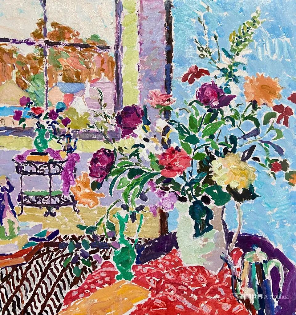 雨果·格伦维尔(Hugo Grenville, 1958-),英国著名浪漫主义画家。他出生于1958年,15岁时就有作品在伦敦切尔西艺术学会展出。他作为一名画家的职业生涯开始于1980年代后期,直到1999年他在巴黎的一个展览中亲眼目睹了野兽派的作品,他的作品才变得更加丰富多彩。他热爱波纳尔(Bonnard)、马蒂斯(Matisse)和帕特里克赫伦(Heron),他们的作品沉浸在一片斑斓的阳光中。
