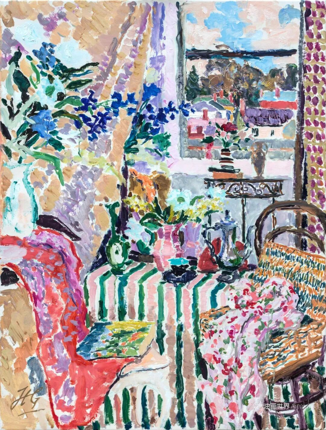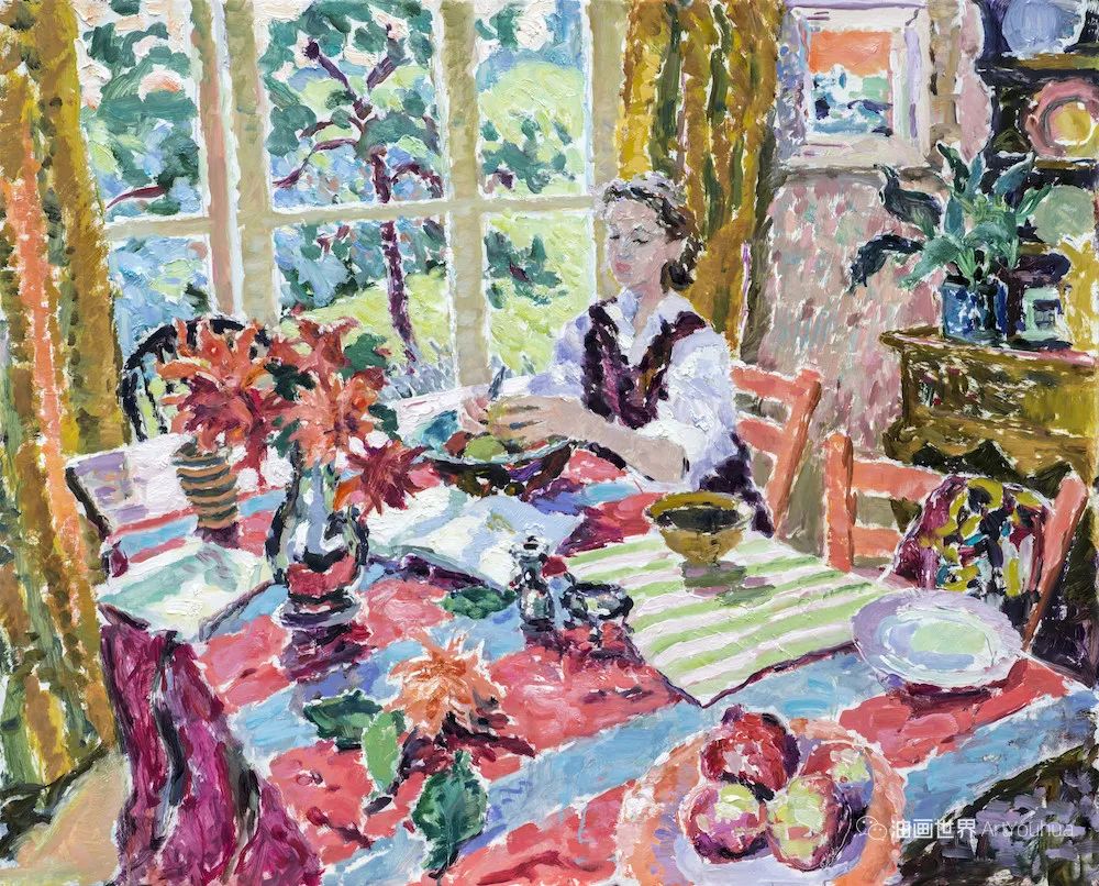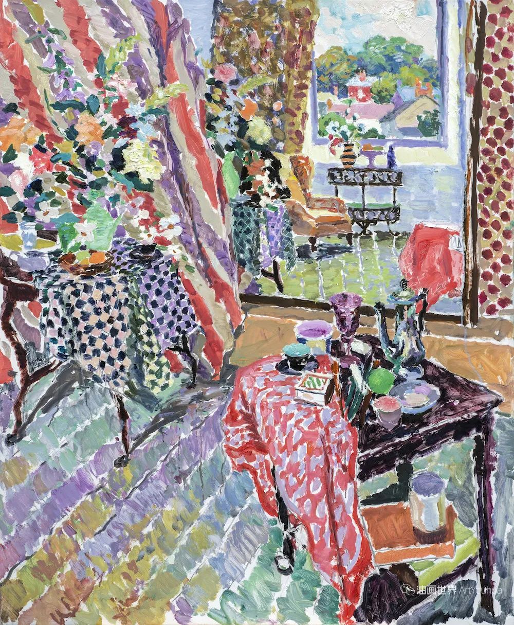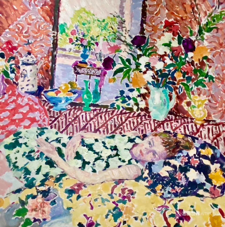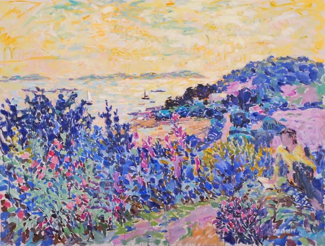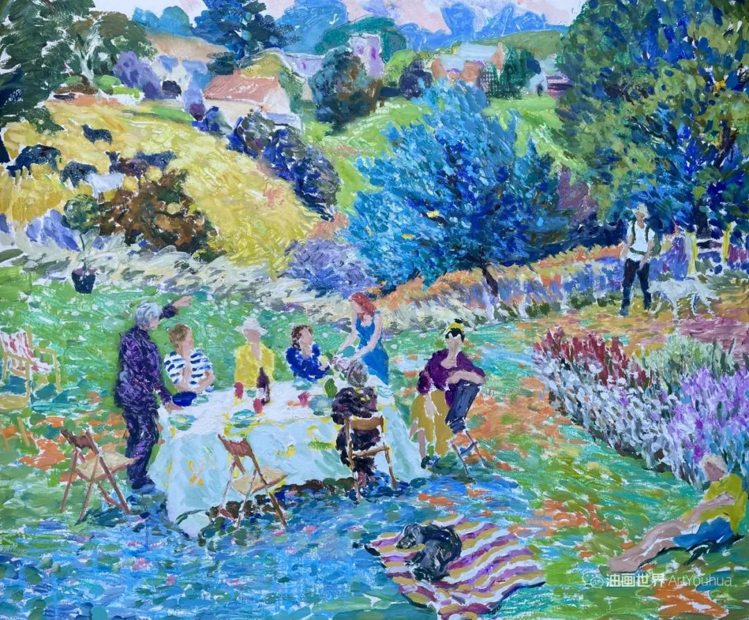 雨果·格伦维尔(Hugo Grenville, 1958-),英国著名浪漫主义画家。他出生于1958年,15岁时就有作品在伦敦切尔西艺术学会展出。他作为一名画家的职业生涯开始于1980年代后期,直到1999年他在巴黎的一个展览中亲眼目睹了野兽派的作品,他的作品才变得更加丰富多彩。他热爱波纳尔(Bonnard)、马蒂斯(Matisse)和帕特里克赫伦(Heron),他们的作品沉浸在一片斑斓的阳光中。