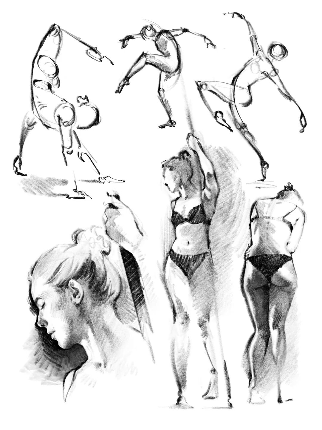午休等空闲时间也被Aaron Griffin拿来做日常练习,黑白稿就更显功力。