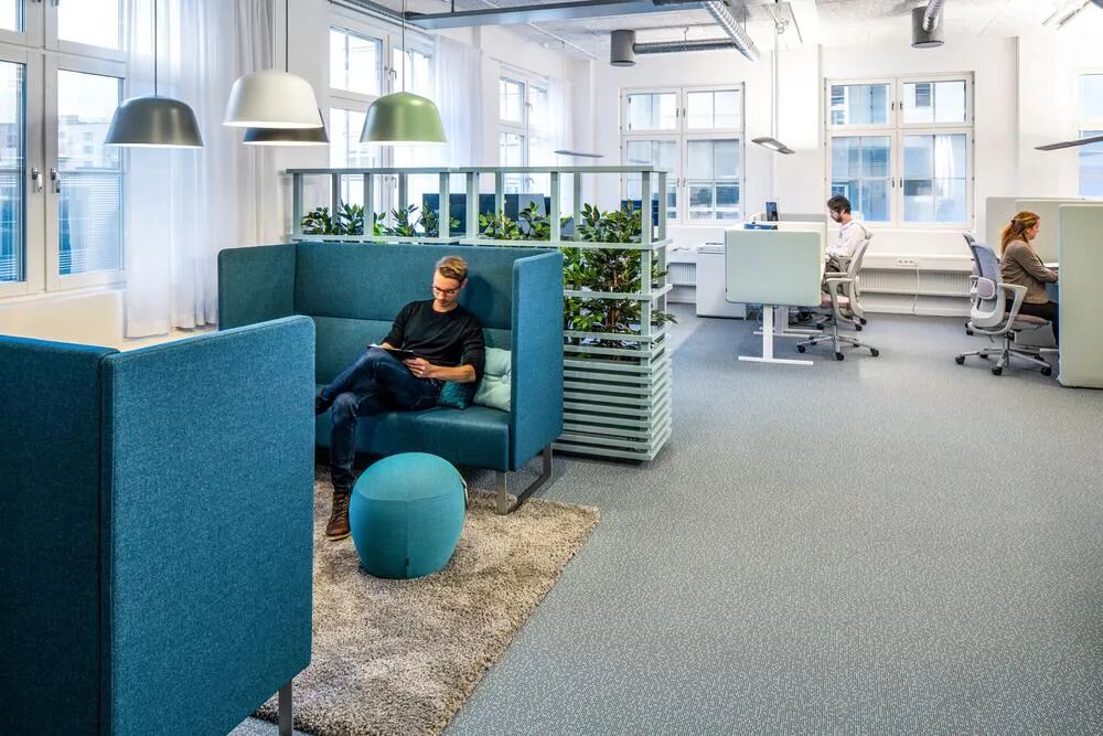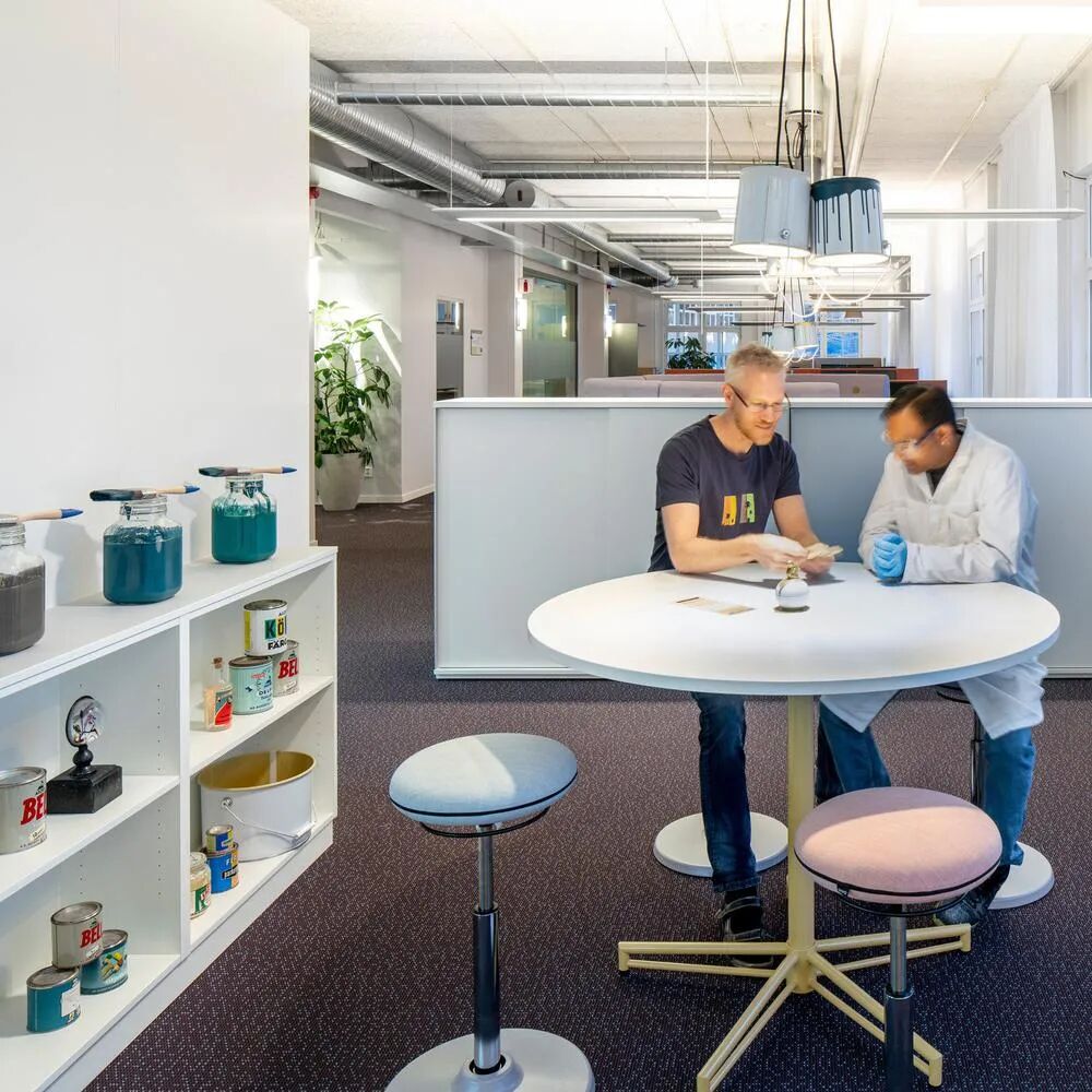 为了创造成本效益,本案全部采用Tikkurila自己的涂料、油漆和施工团队。双方的紧密合作,将色彩与工作环境的完美结合发挥的淋漓尽致。丰富的色彩搭配、多样化的家具组合、结合各种有趣的创意巧思,共同创建了一个灵活、靓丽、时尚多元的现代工作环境。
