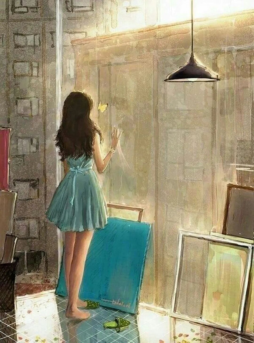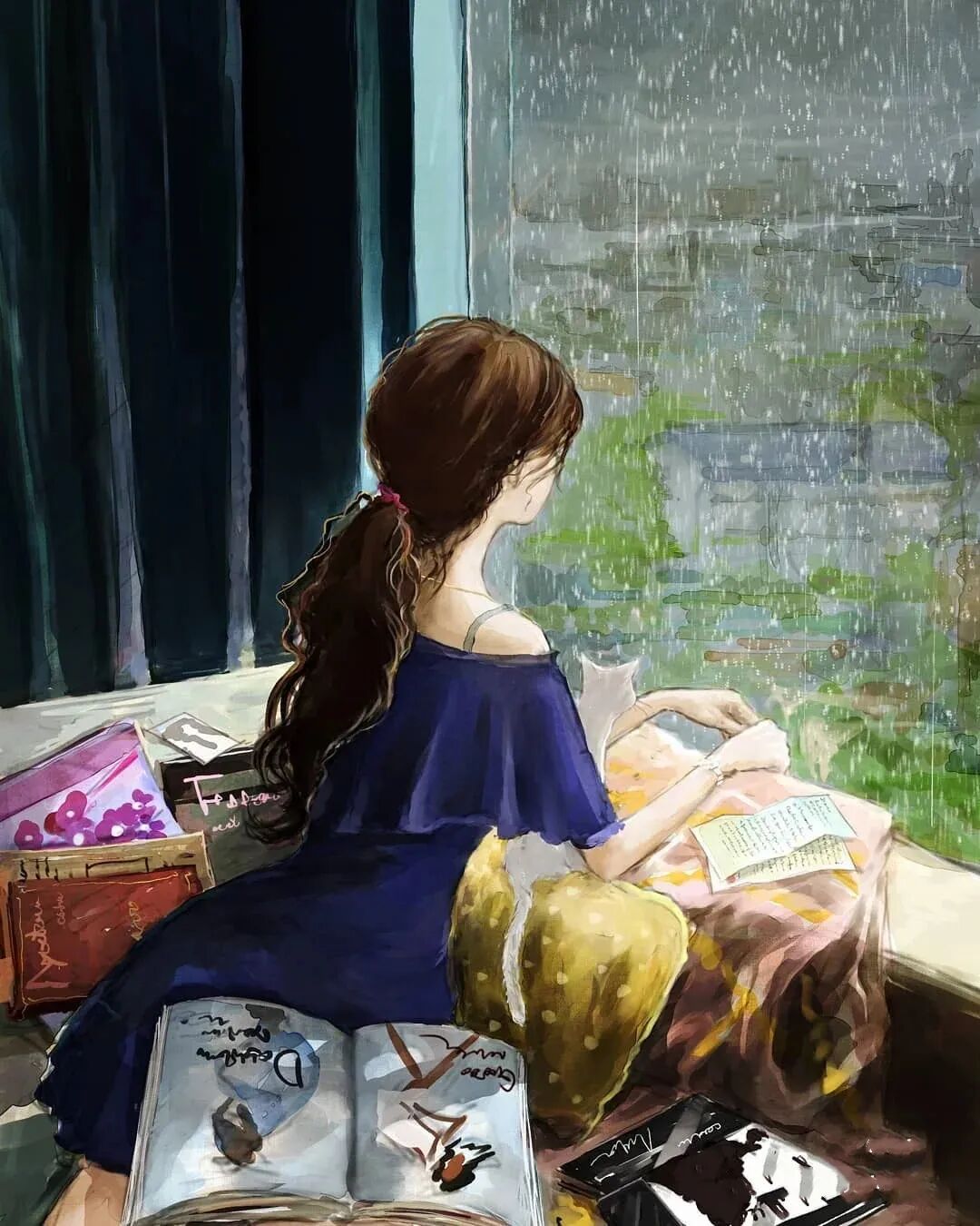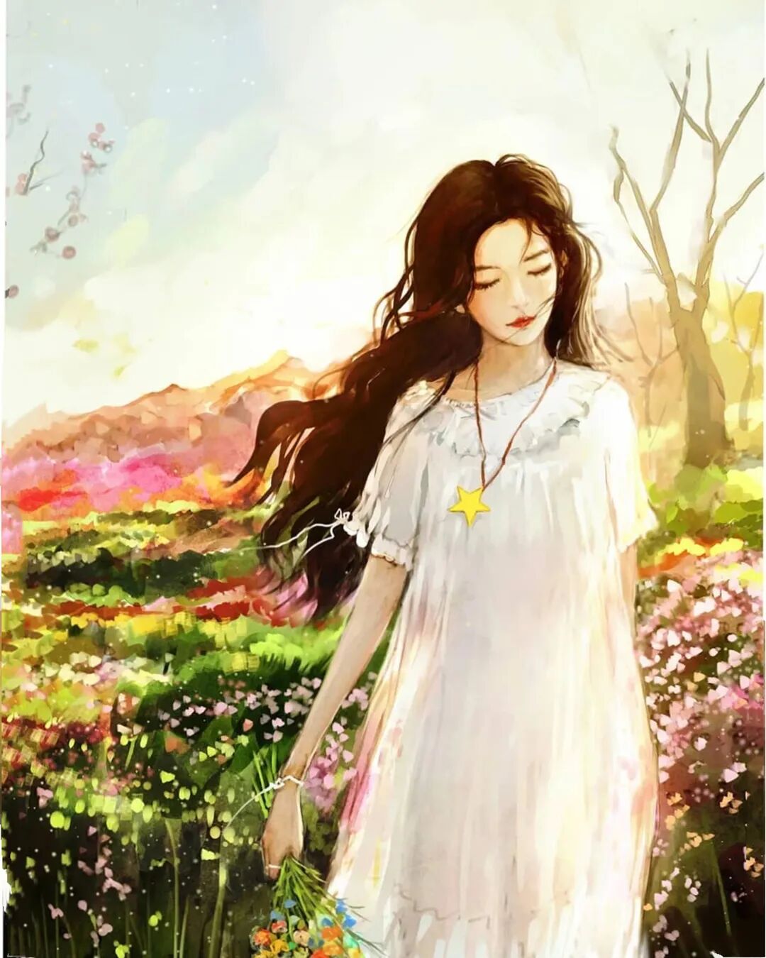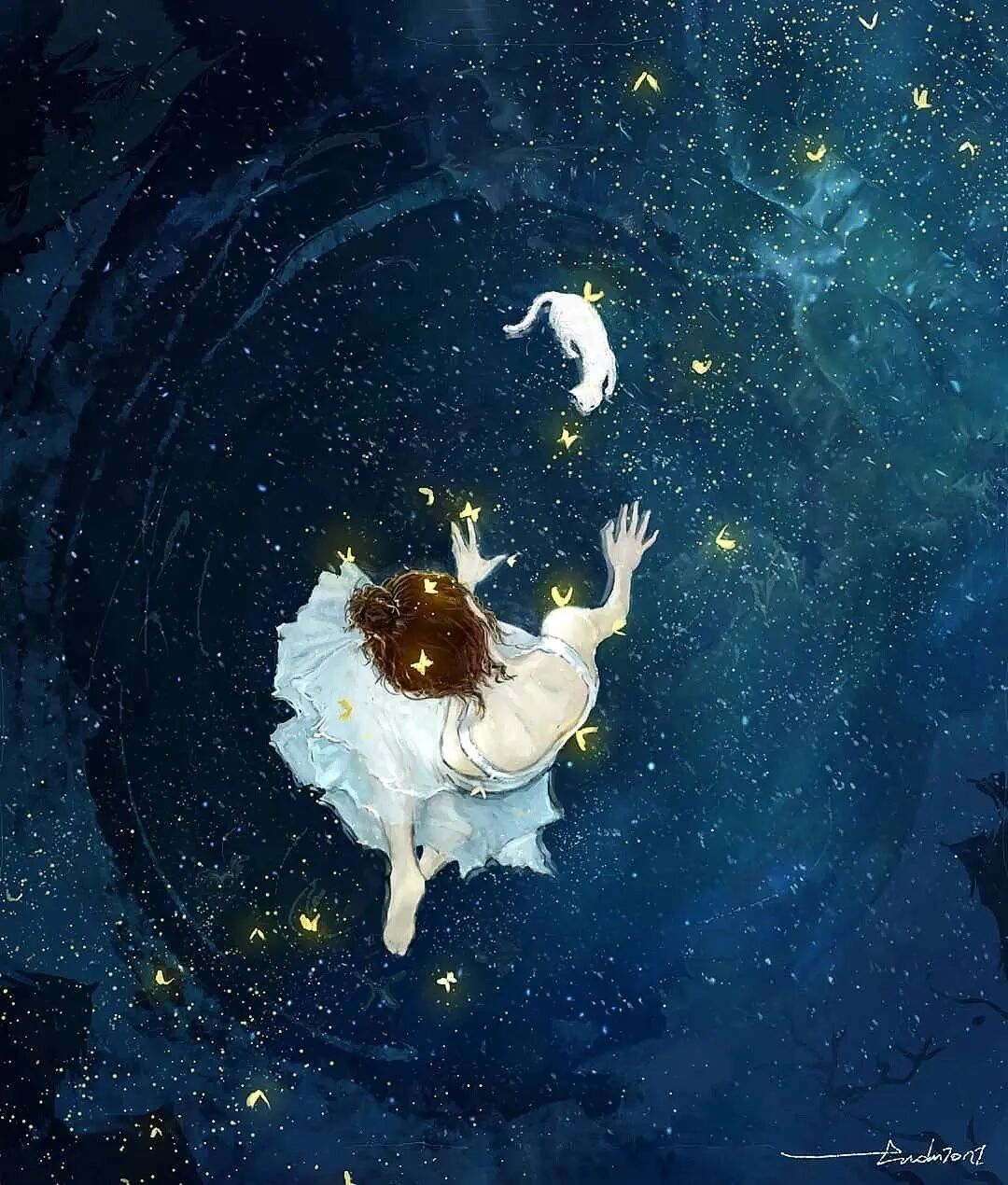 色彩梦幻的氛围感女孩插画,画风唯美治愈,主题浪漫且具有创意