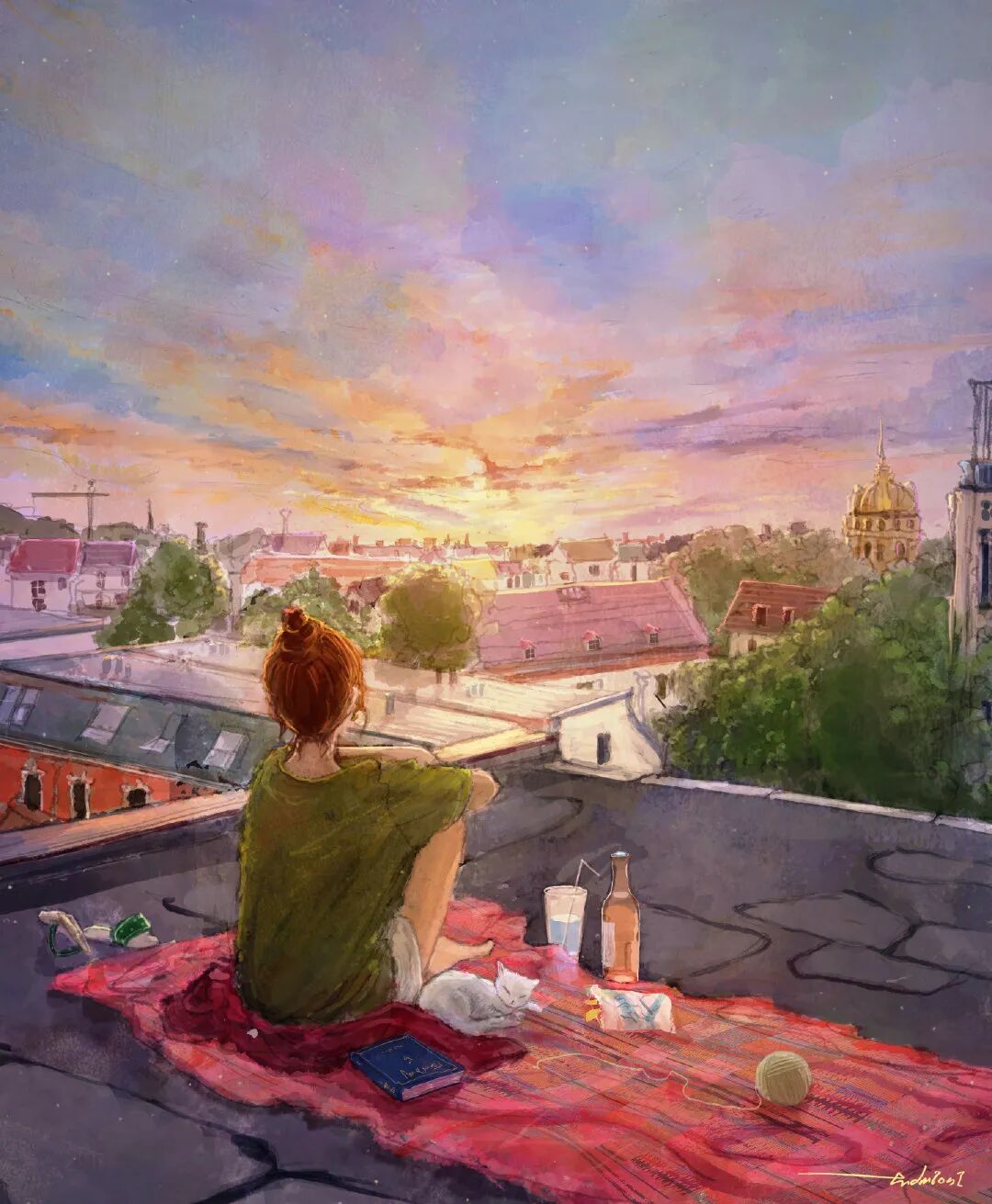 画师大大有着很具特色的点点笔触,浪漫又华丽,氛围感十足,不过于在意细节,意在渲染画面的张力和人物的情绪,好似在讲述一个个温柔的故事。对于各种色调也是轻松驾驭,每一个画面都美得仿佛梦境一般。你喜欢这一组插画作品吗?
