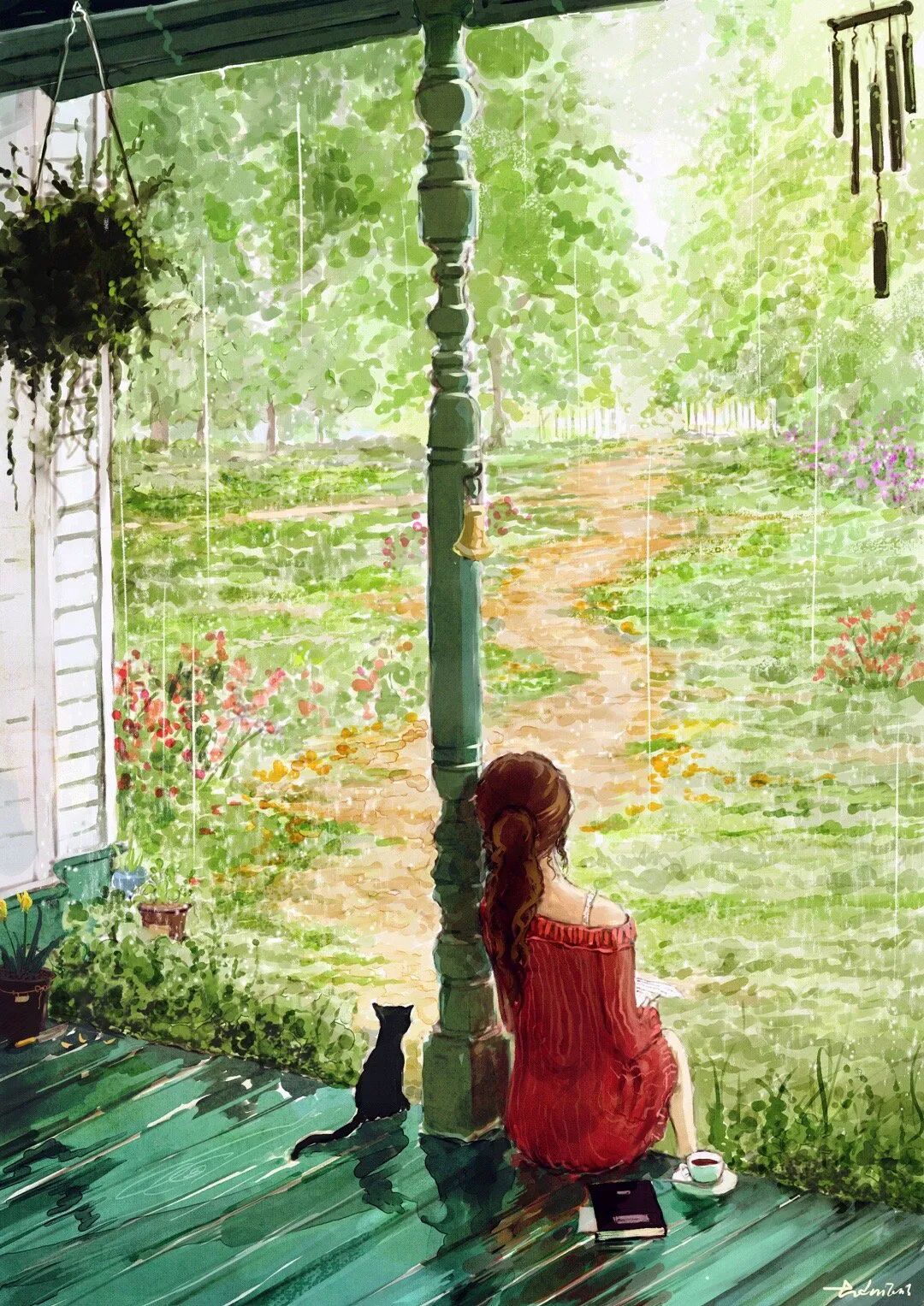 /色彩梦幻的氛围感女孩插画,画风唯美治愈,主题浪漫且具有创意