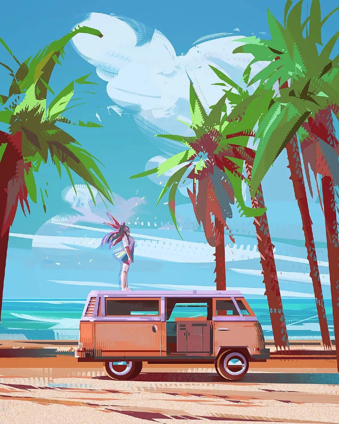 画师大大很好学,吸收百家之长,画面风格多种多样,画面处理上笔触肌理的变化和揉色的丰富度高,强大的光感让人目不转睛!你喜欢这一组插画作品吗?