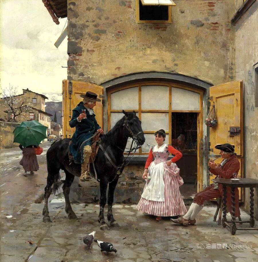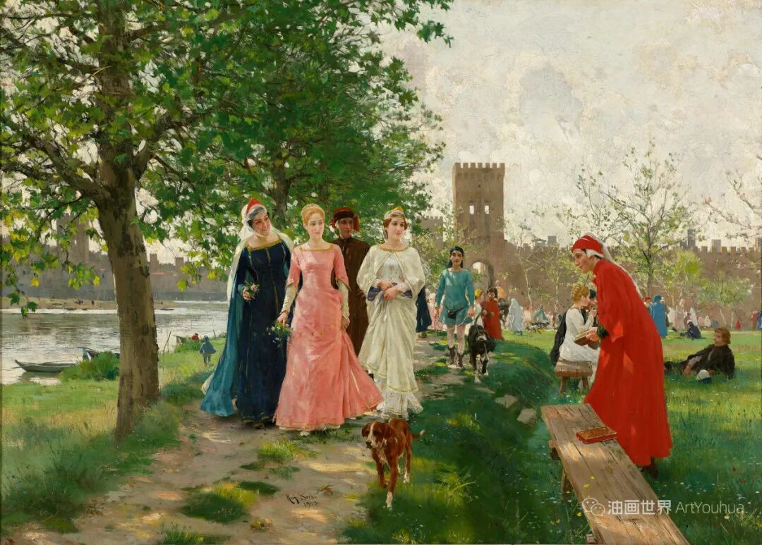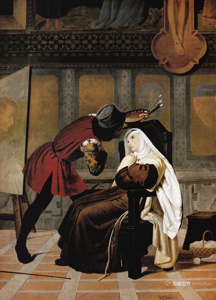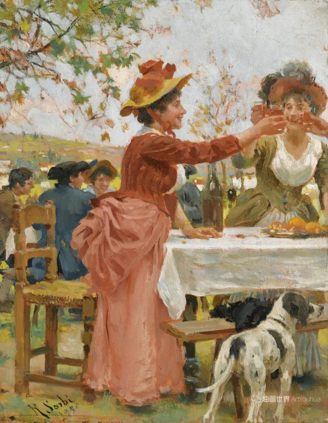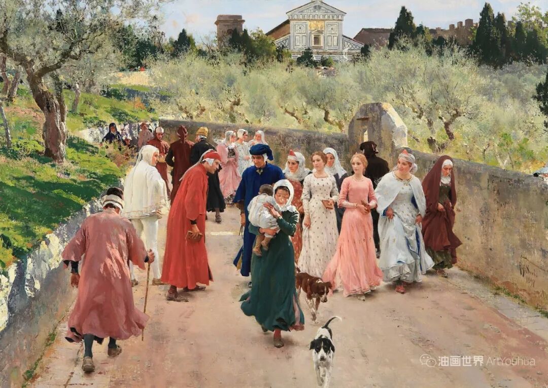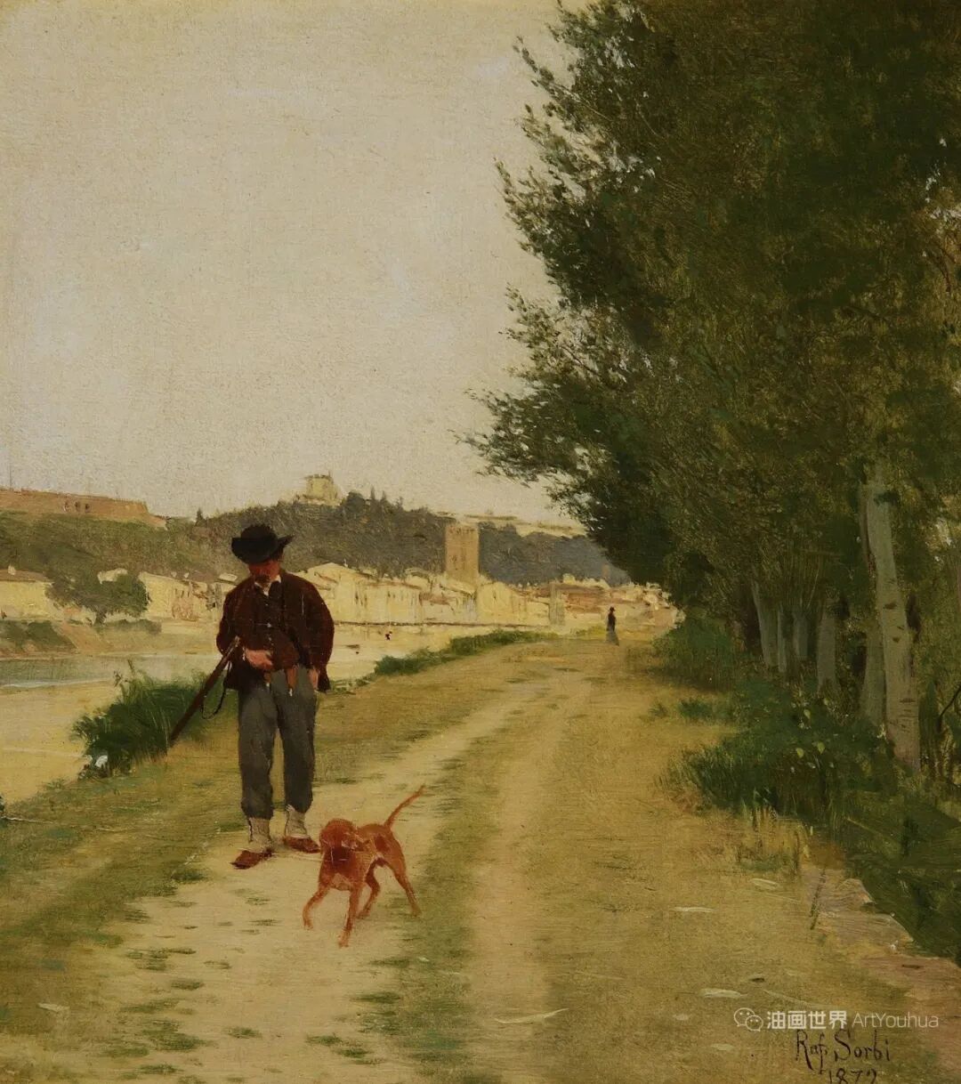 拉斐尔·索尔比(Raffaello Sorbi)是19-20世纪的意大利画家,专门从事叙事绘画。年轻时,他在佛罗伦萨皇家美术学院学习设计,然后在Antonio Ciseri教授手下学习绘画。18岁时,他已经完成了他的第一件主要作品:《受重伤的Corso Donati被圣萨尔维的僧侣运送到他们的修道院》(1861 年)。这幅画在1861年的佛罗伦萨三年展比赛中获得了奖项。他为美国和英国的赞助人完成了委托作品。