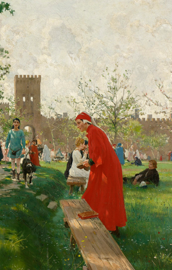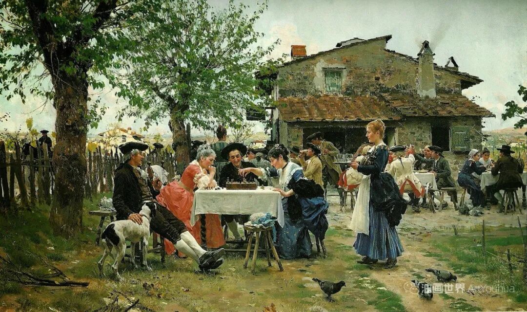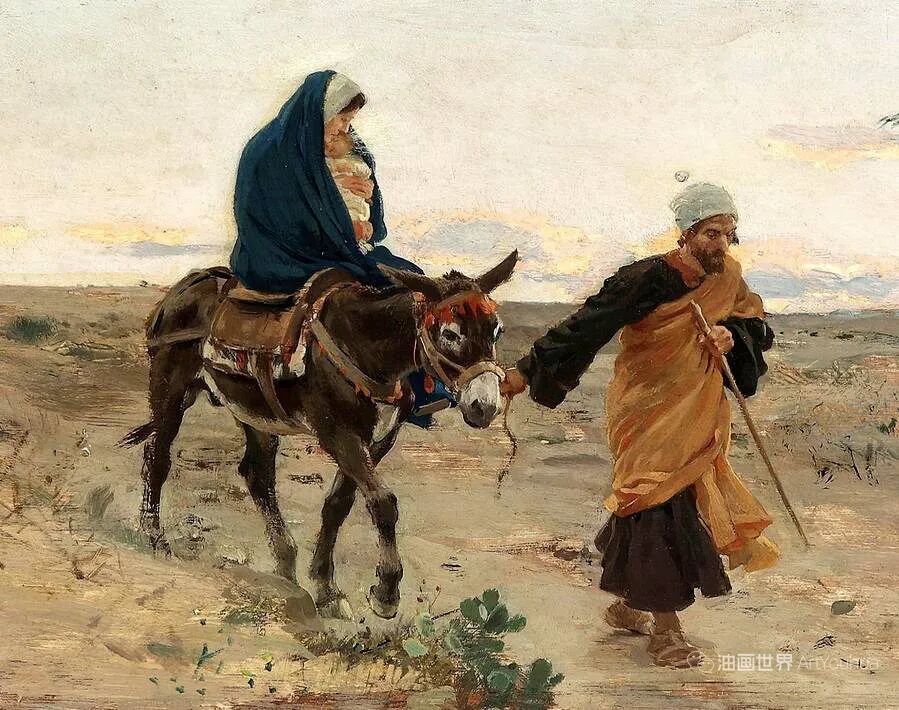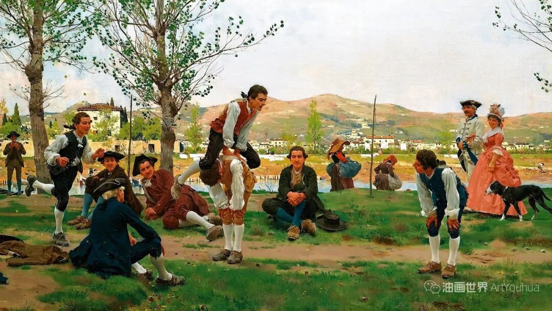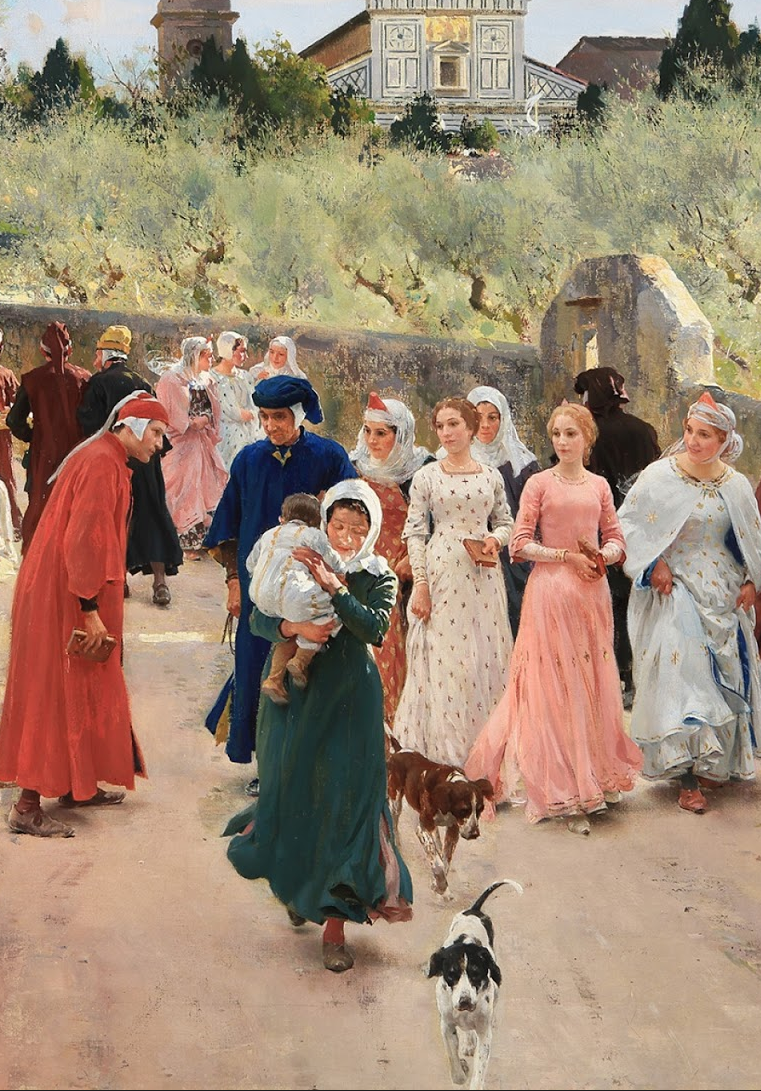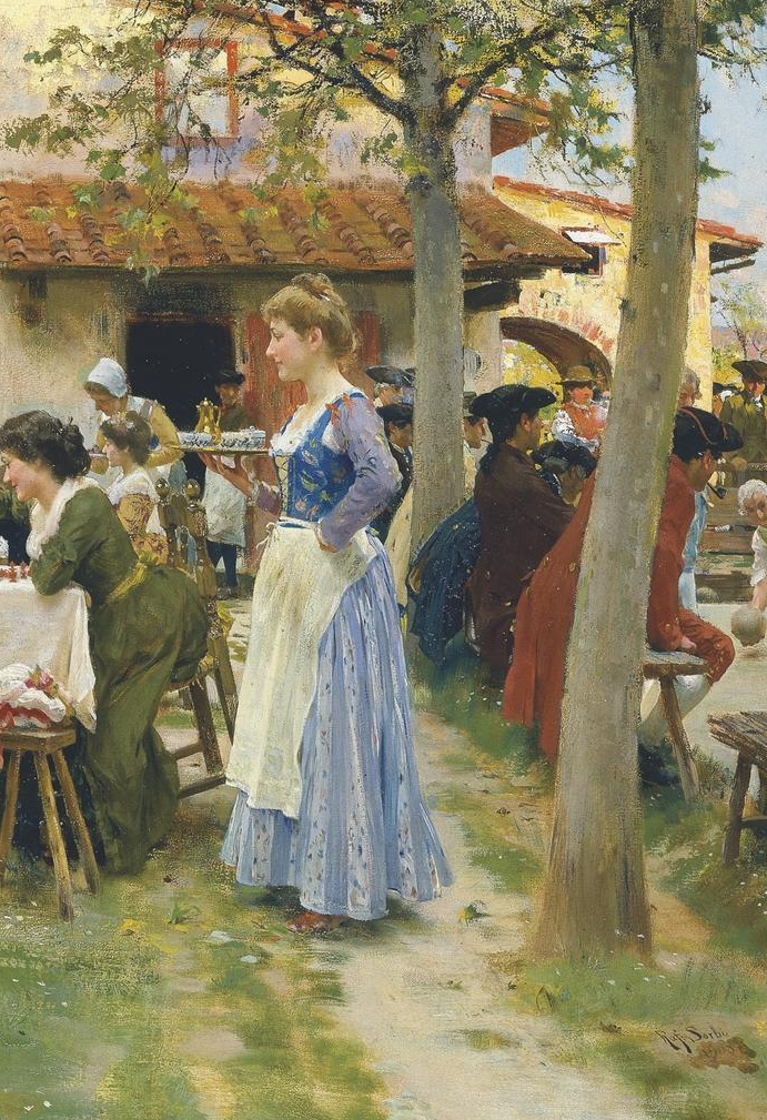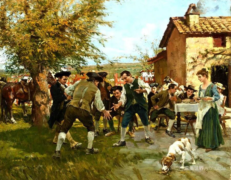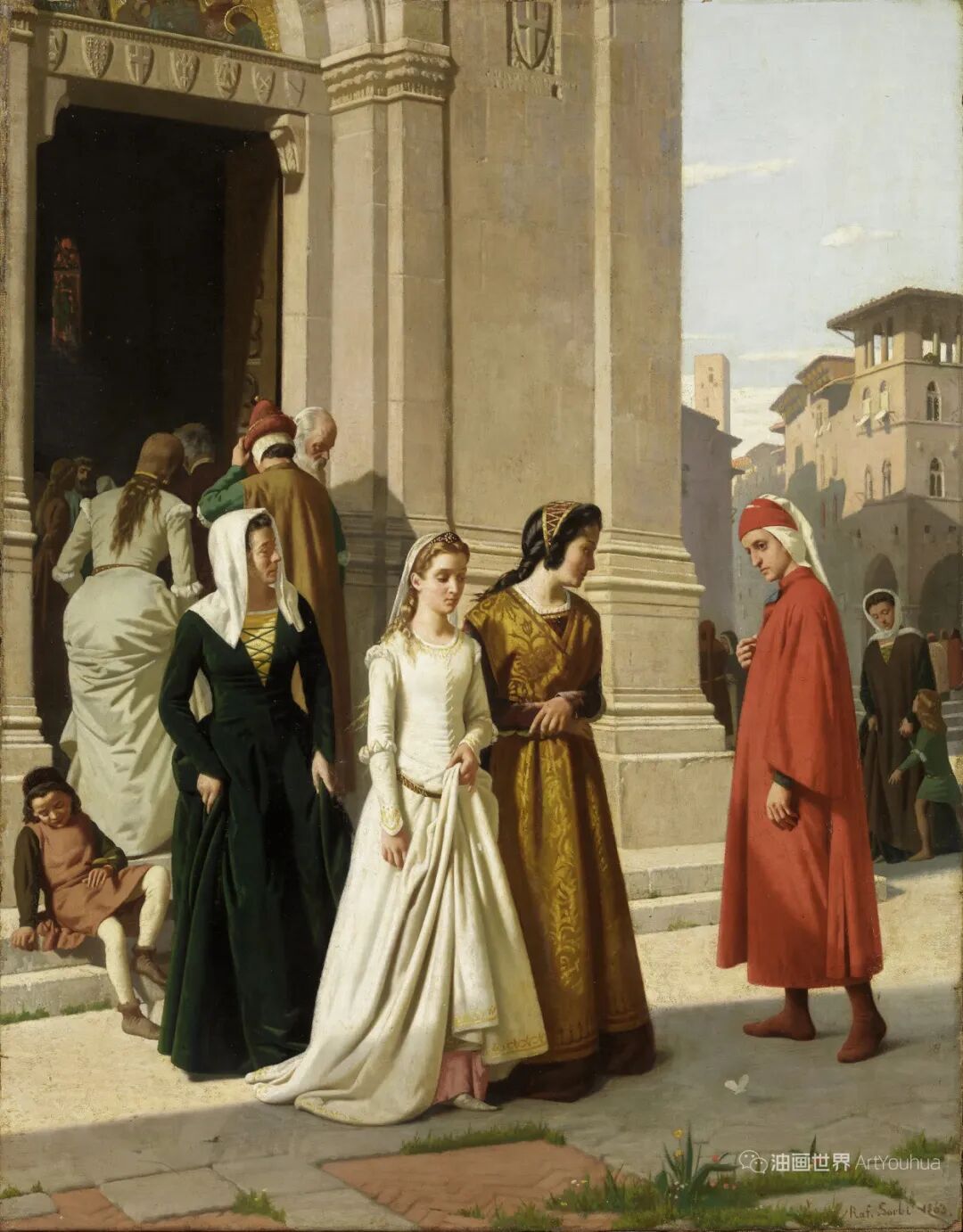 拉斐尔·索尔比(Raffaello Sorbi)是19-20世纪的意大利画家,专门从事叙事绘画。年轻时,他在佛罗伦萨皇家美术学院学习设计,然后在Antonio Ciseri教授手下学习绘画。18岁时,他已经完成了他的第一件主要作品:《受重伤的Corso Donati被圣萨尔维的僧侣运送到他们的修道院》(1861 年)。这幅画在1861年的佛罗伦萨三年展比赛中获得了奖项。他为美国和英国的赞助人完成了委托作品。