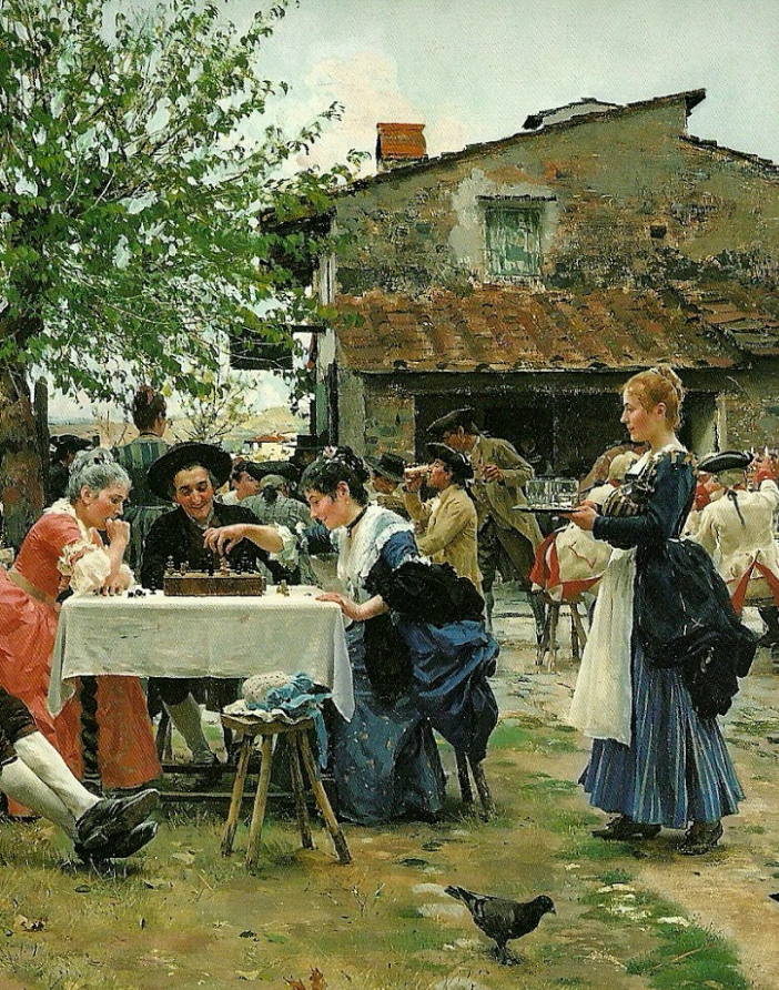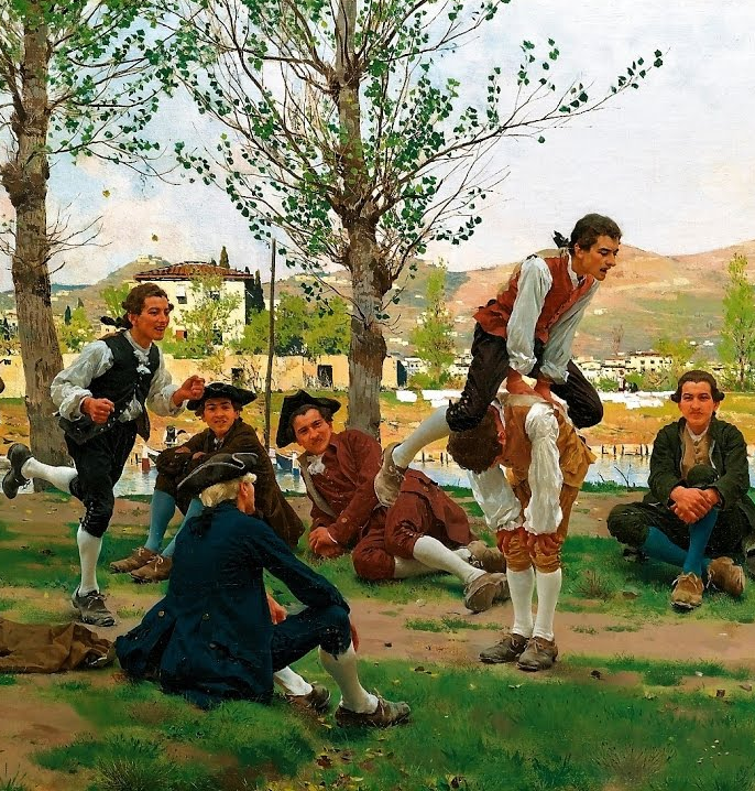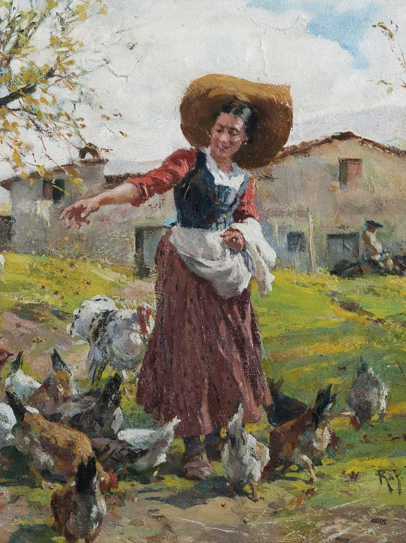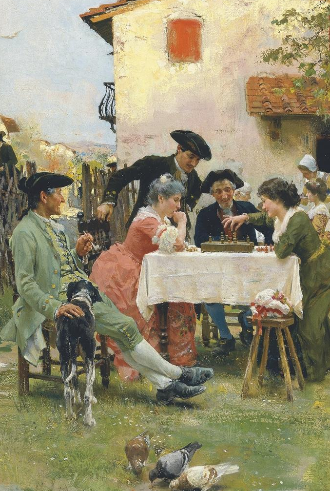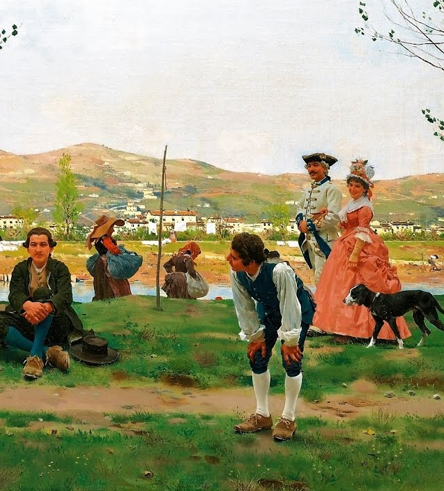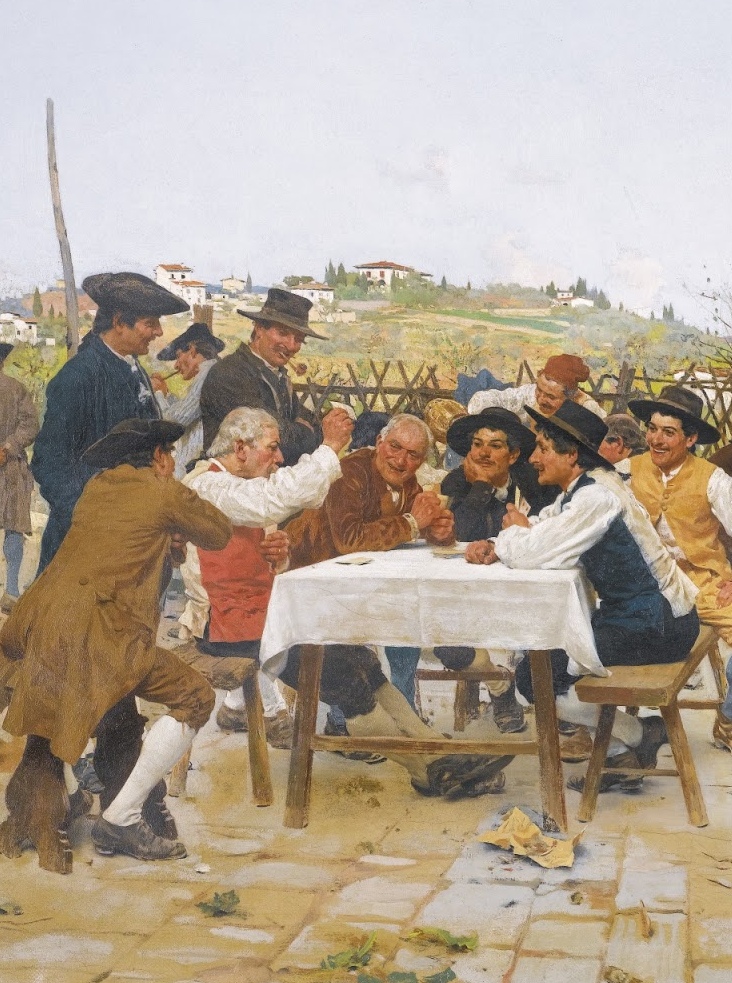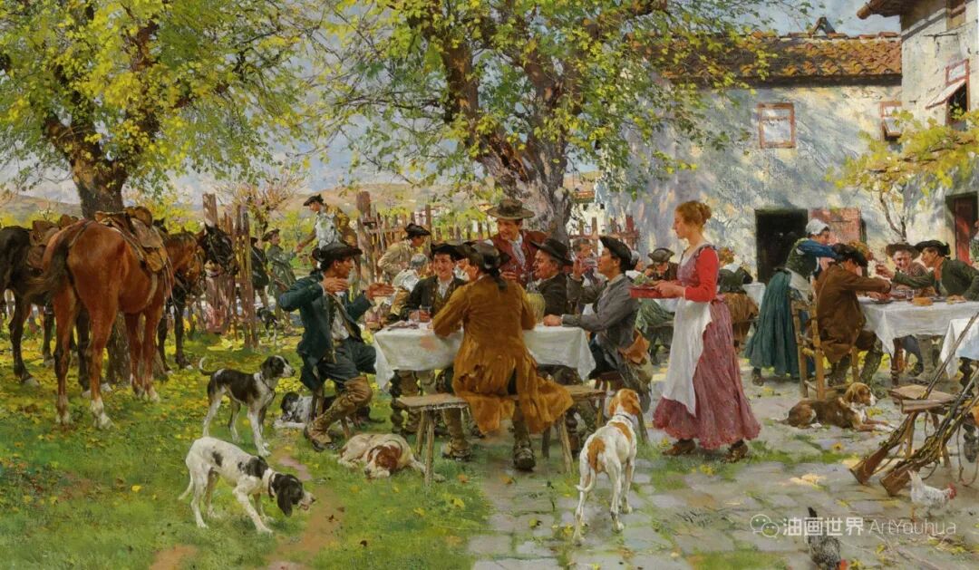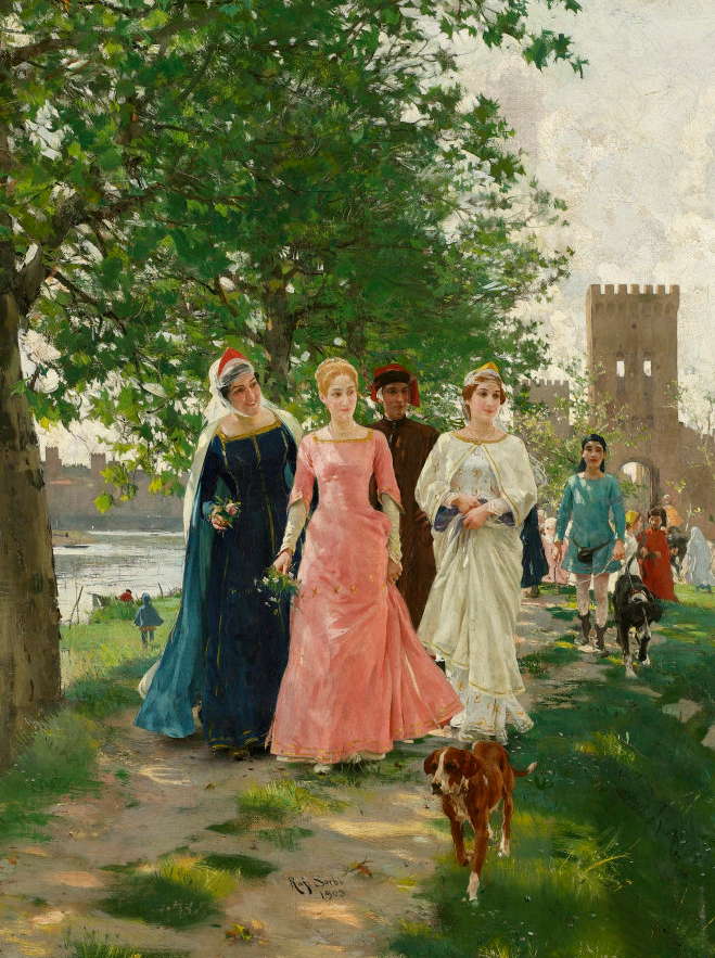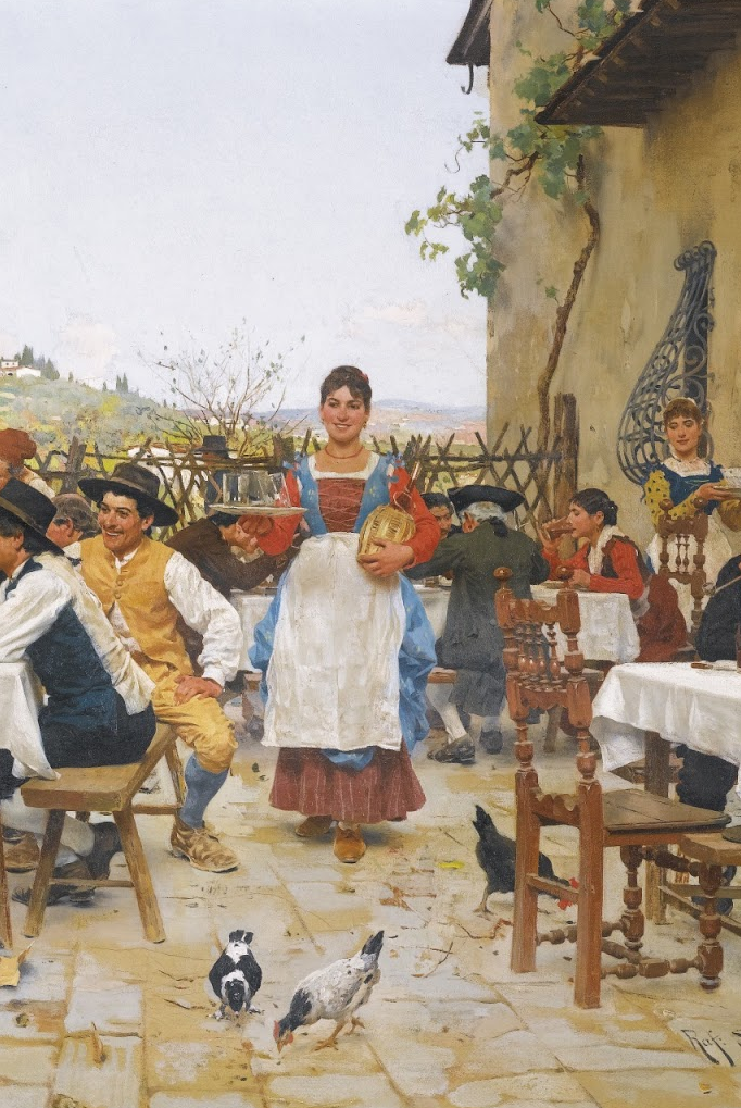 拉斐尔·索尔比(Raffaello Sorbi)是19-20世纪的意大利画家,专门从事叙事绘画。年轻时,他在佛罗伦萨皇家美术学院学习设计,然后在Antonio Ciseri教授手下学习绘画。18岁时,他已经完成了他的第一件主要作品:《受重伤的Corso Donati被圣萨尔维的僧侣运送到他们的修道院》(1861 年)。这幅画在1861年的佛罗伦萨三年展比赛中获得了奖项。他为美国和英国的赞助人完成了委托作品。