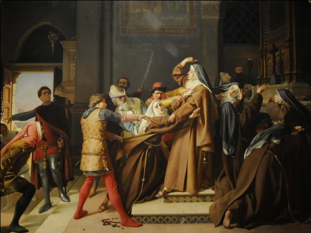 《皮卡达·多纳蒂被她的兄弟科索从圣基亚拉修道院绑架》(1866 年)