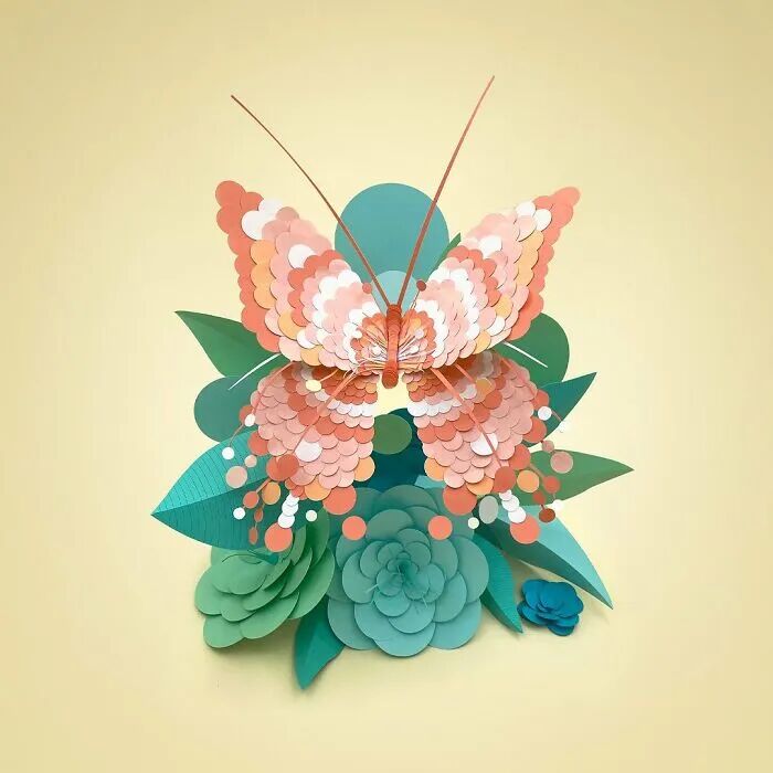 丽莎·劳埃德的纸雕作品大多是三维的,她受大自然的色彩和图案的启发,使得自己的作品看起来都非常超写实。据小绛了解,这位艺术家之前曾经是一名动画师,她使用过多种材料来创作艺术作品,其中包括纸张,以及织物、粘土等等,最终她选择了纸,在她看来,纸张可以被赋予无限的可能。