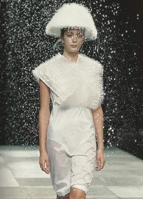 他的设计尤其体现在高科技面料的运用上,渡边淳弥对高科技面料的运用精致又独到,色彩上名暗对比鲜明,夸张的表现手法,给人留下深刻的印象。