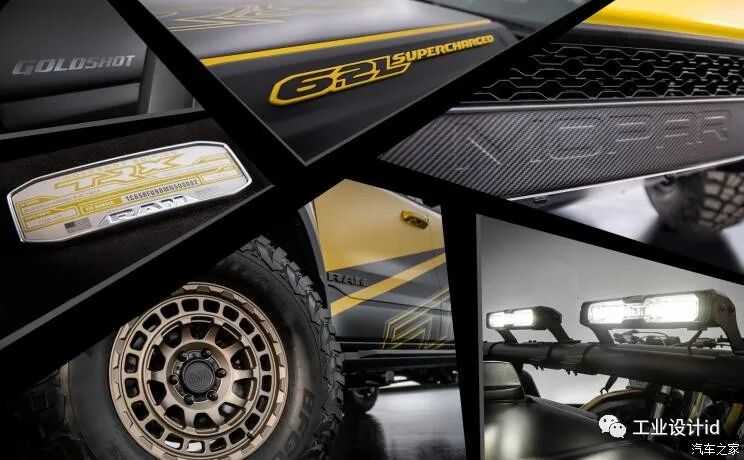 先来看看RAM 1500 TRX Gold Shot车型,新车采用了十分亮眼的金色涂装,并融入大量黑色元素进行点缀,拥有相当强的视觉冲击力。此外,新车配有37英寸全地形轮胎,看上去十分野性。此外,新车的尾厢内部可以并排容纳两台摩托车,怎么样,身为“骑士”的你是否有点心动呢?