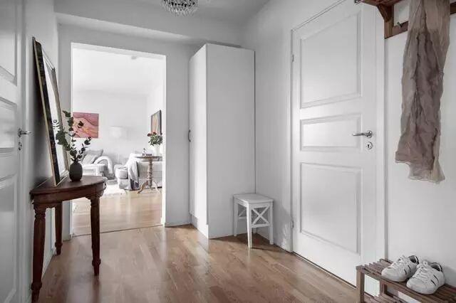 一进门就是个非常宽阔的大玄关,这让家人很堪忧,玄关搞这么大,里面的卧室会不会很小,毕竟只有那么大的面积,且看下面的展示。玄关道两侧,分别放有衣架、鞋架、衣柜,用来做个简单的收纳,同时也有一种家的感觉。