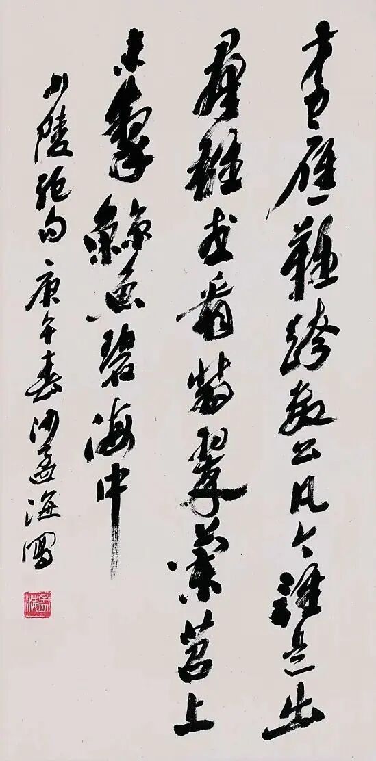 再说了,沙孟海作为近代的知名大家,人家在书法方面也是下过苦功夫的,并不是心血来潮随意一写就成的。如果你还不相信的话,我建议你拿起笔临摹一下沙孟海先生的字。试过之后,你就会发现,要写出那种雄浑的气势来,没有相当的功力是表达不出来的。还是那句话,评论别人的书法,首先要将自己的胸怀敞开,要将自己的审美水平提升上去。千万不要片面的用自己临帖的水平,去随意评价。有的时候,书法的美,你真的不懂。