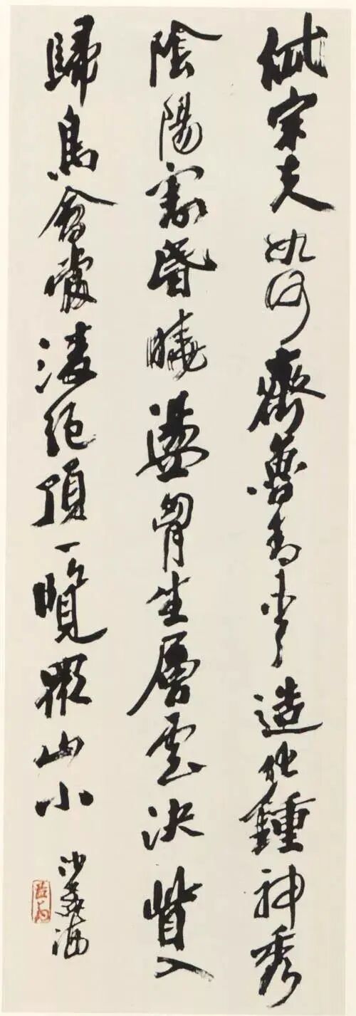 沙孟海《行书杜甫望岳诗轴》 98×32cm 1983年