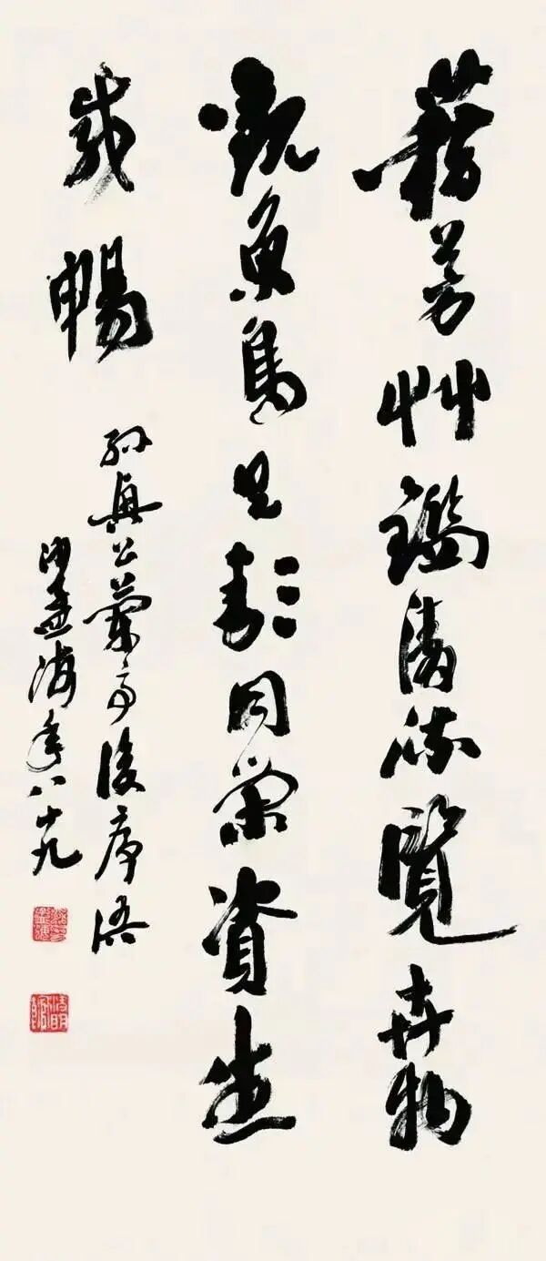 沙孟海《章草到处莺歌燕舞轴》 102×34cm 1975年