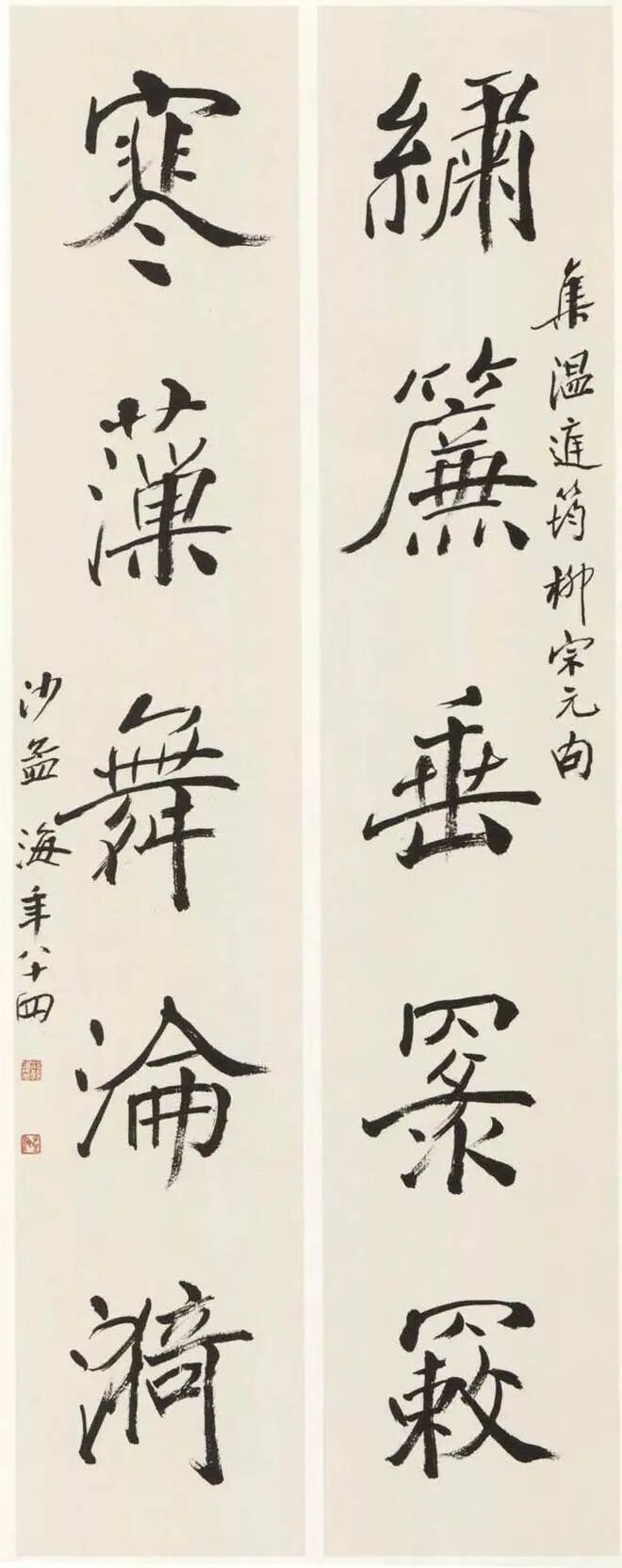 沙孟海《楷书绣帘寒藻五言联》 68×32cm 1983年