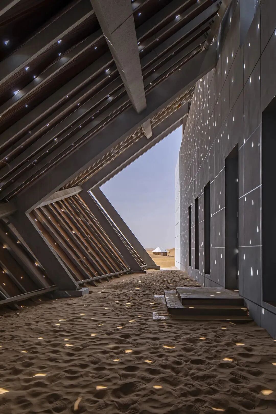 对于一个在沙漠中的建筑,建筑师希望它符合沙漠的气质——神秘、无常,冷静又热烈,就像太多关于沙漠的故事一样。