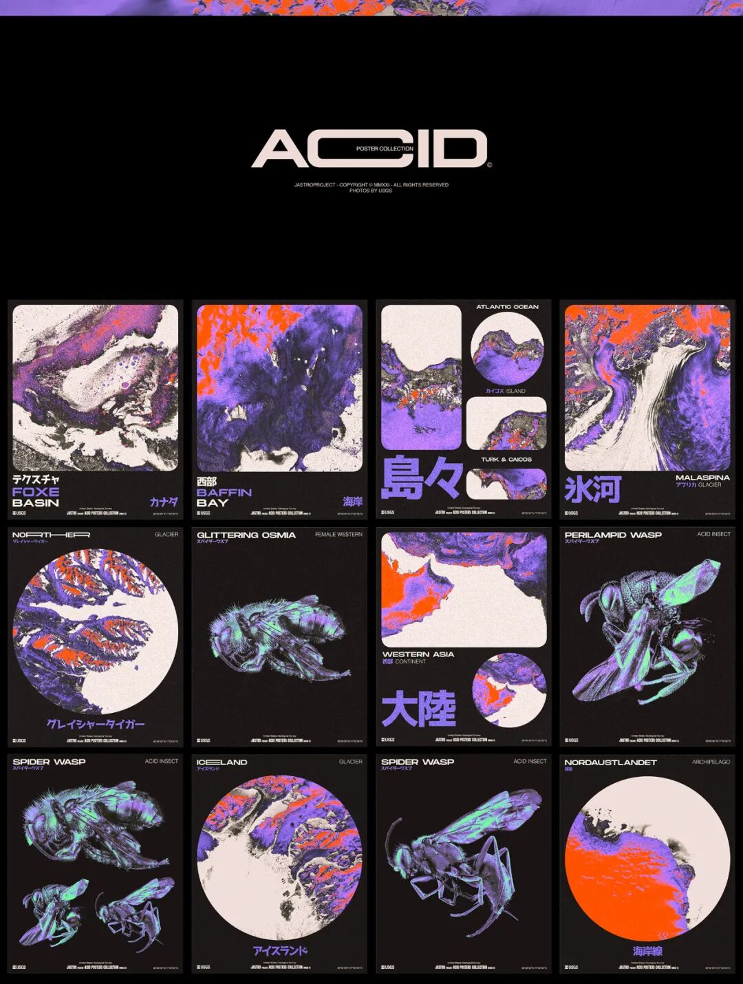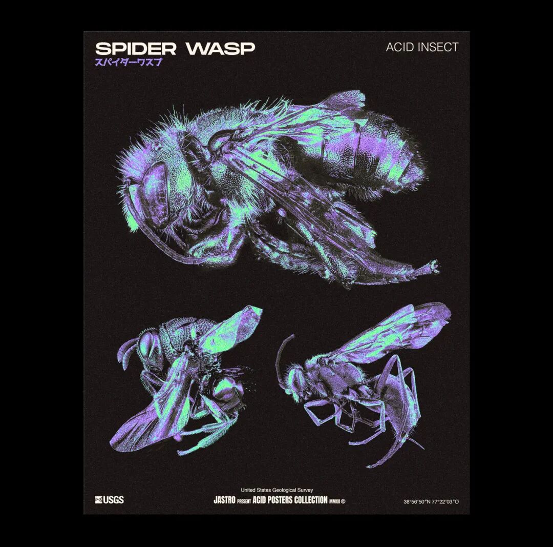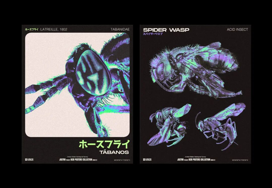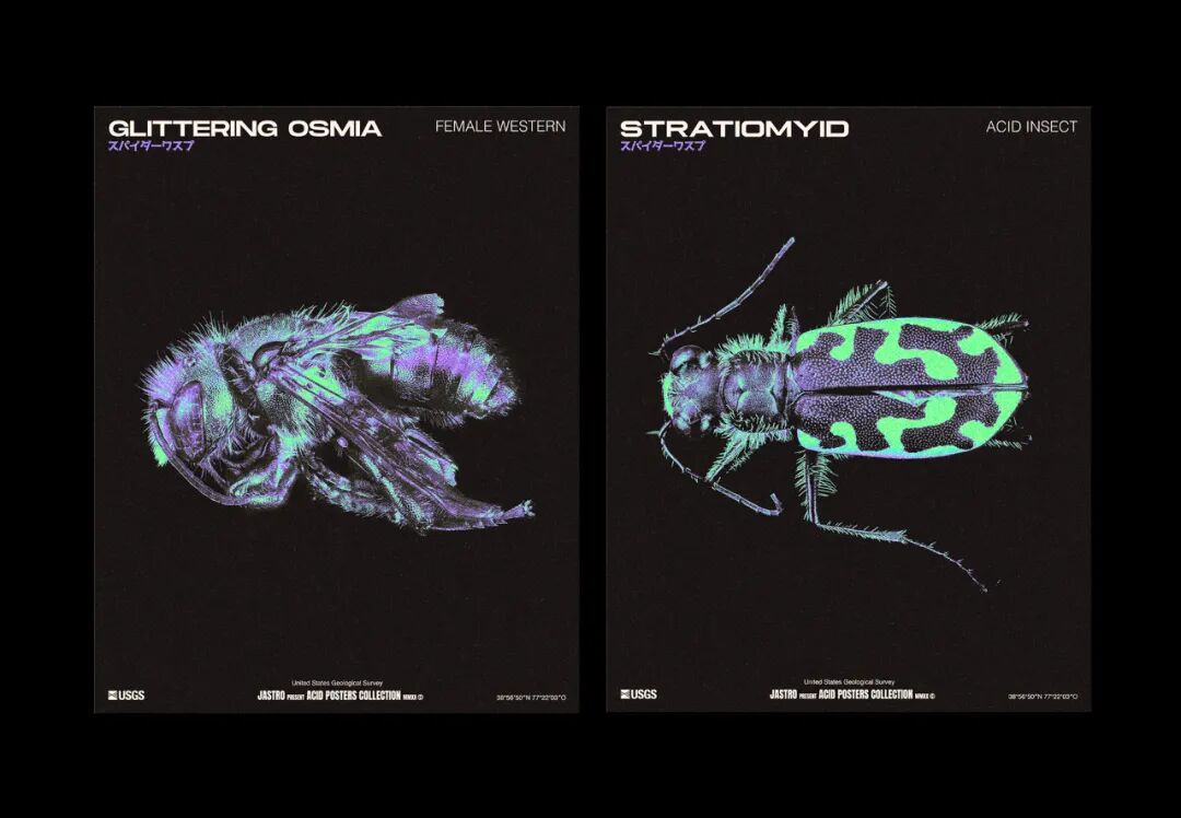 在探索美国地质调查局的照片时,他们发现了世界不同地区沙漠和冰川之间的美丽卫星照片。另一个令人愉快的发现是不同昆虫的宏观照片,所以他们决定以它们为灵感制作一系列海报。