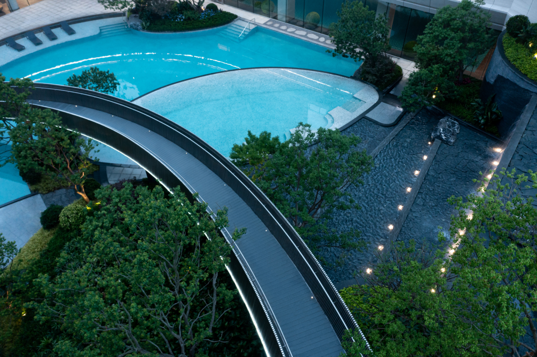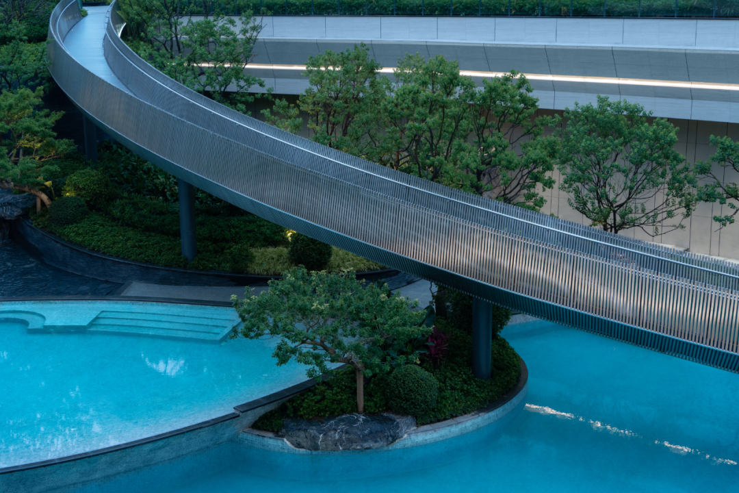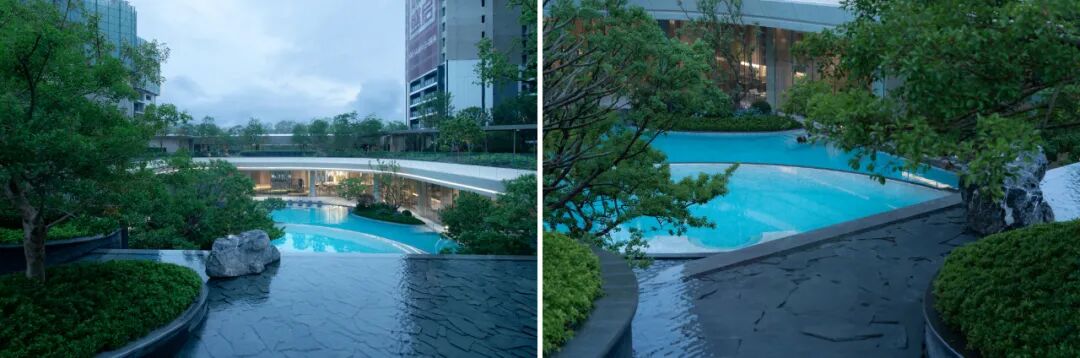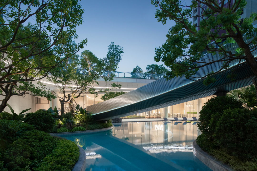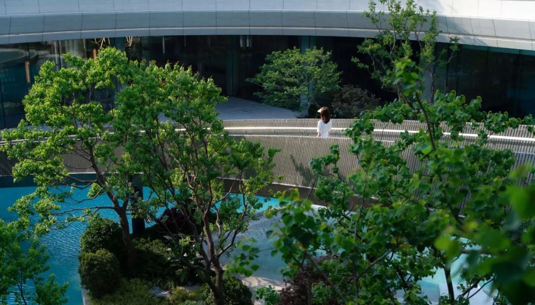 The moment you walk into thelandscape hall, all the hustle and bustle of city life will be screened off.Time stands still for you in the quiet and peaceful world. The shady entranceand the mirror water close to the opening of the building contribute to ahotel-style holiday atmosphere.