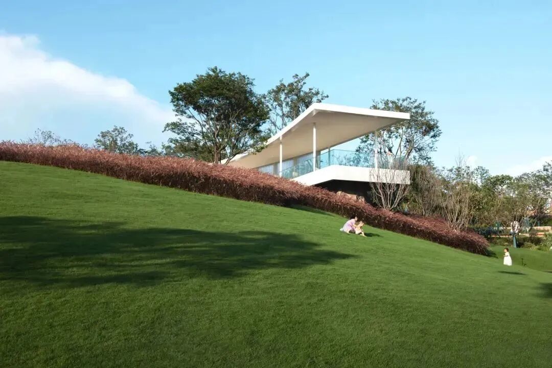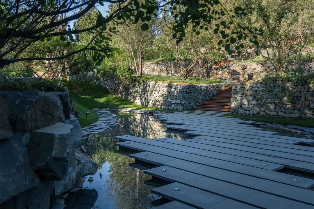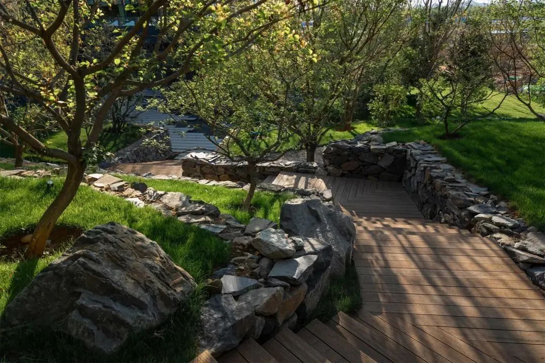 用堆坡造型打造起伏的景观地形不仅可以解决高差问题,而且成为一种独特的景观。