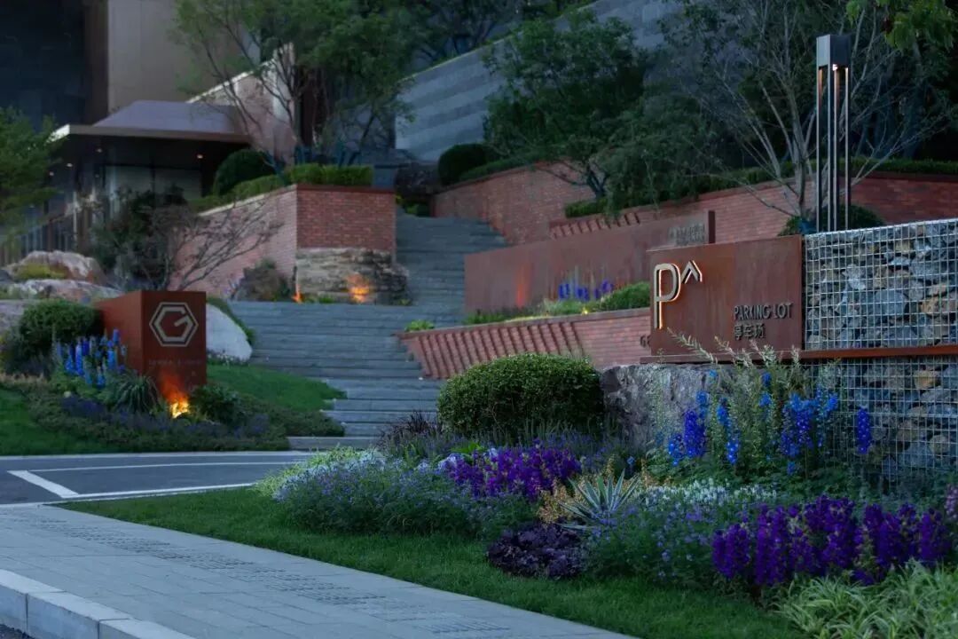 常用的高差设计手法包括堆土造景、台阶、台阶地园、下沉庭院、挡土墙等,利用植物、景观小品、文化墙、板凳等艺术化的处理手法,让高差在设计中成为一大亮点。