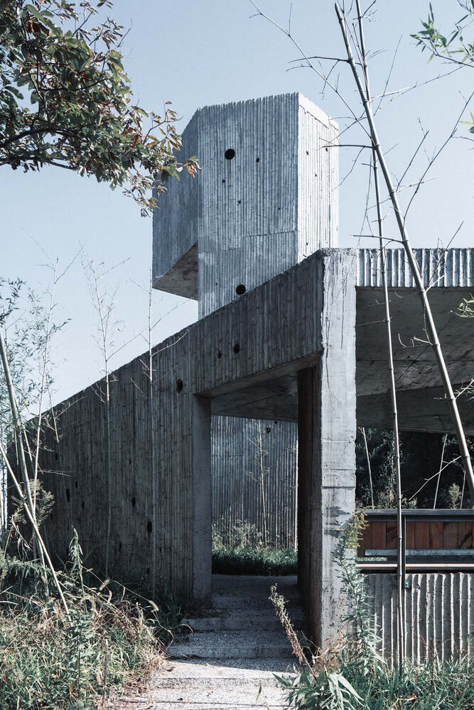 对于这个建筑来说,竹模混凝土的随机性、编织感以及深刻的凹凸感,很符合想象中的粗砺感。
