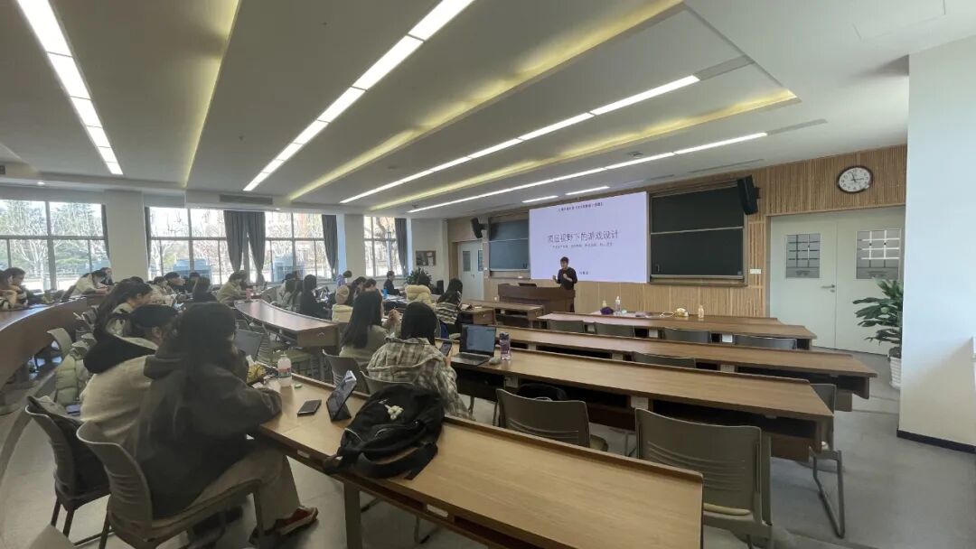 接下来的课程由雷火UX用户体验总监刘勇成来讲授。刘老师为大家介绍了顶层视野下的游戏设计是怎样的,通过课程,同学们对游戏行业及产业链,游戏产品组织架构和核心理念都有了初步的了解。
