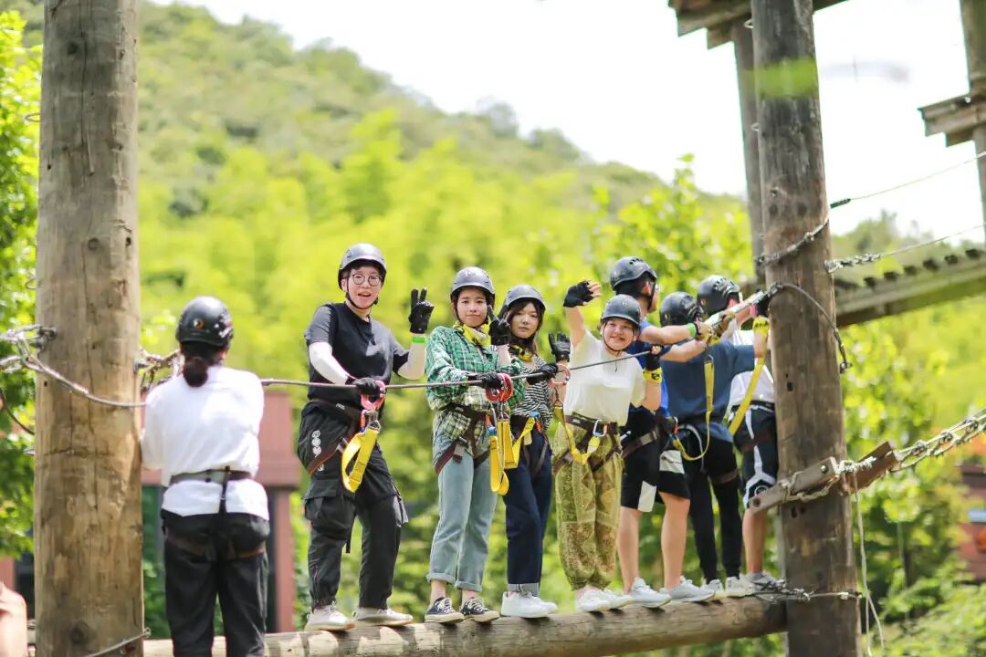 Discovery(探索)极限基地:包含攀岩墙、丛林滑索、高空网阵挑战、地面障碍、热气球、徒步探索、荒野求生等户外运动项目或设施。