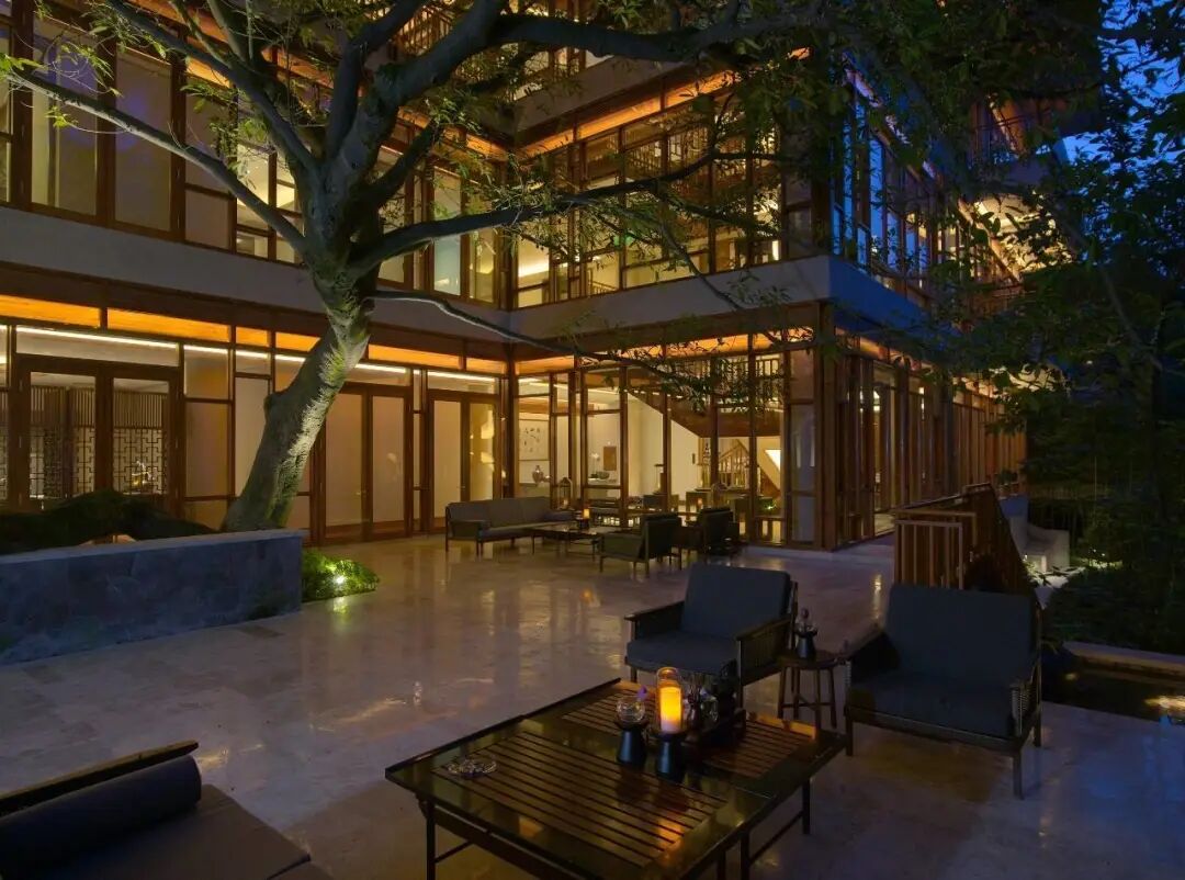 当奔涌的嘉陵江、迤逦的缙云山,与缠绵的北温泉相遇,如同出世的隐士一般住在山色迤逦,古木葱茏的深山老林里,纵情山水、品诗看画、抚琴烹茶。每栋建筑均精准定位造于树与树之间,枝蔓与客房交错掩映,随便游走都是出其不意的景致。