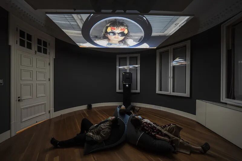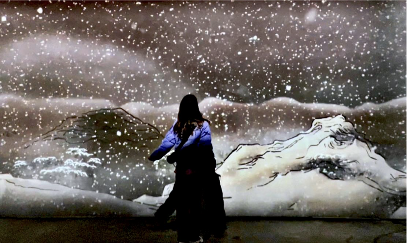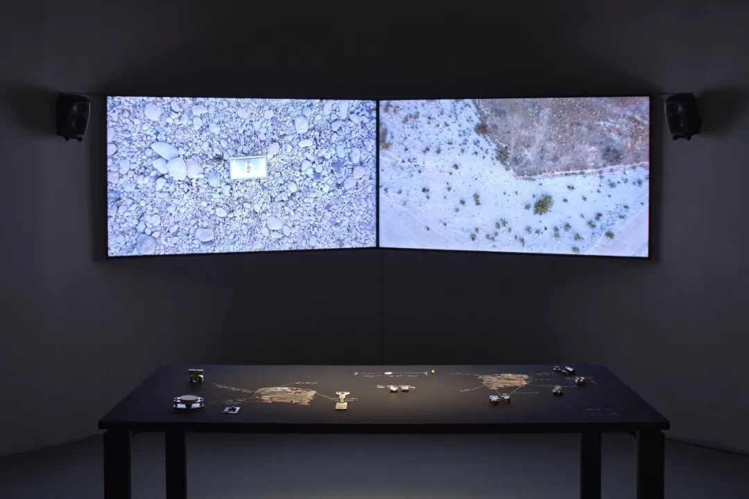 绍达特·伊斯梅洛娃,《天圈》,2014,有声彩色视频,9分37秒。由艺术家提供。“RAM Highlights 2022:美好生活”展览现场图,上海外滩美术馆,2022年