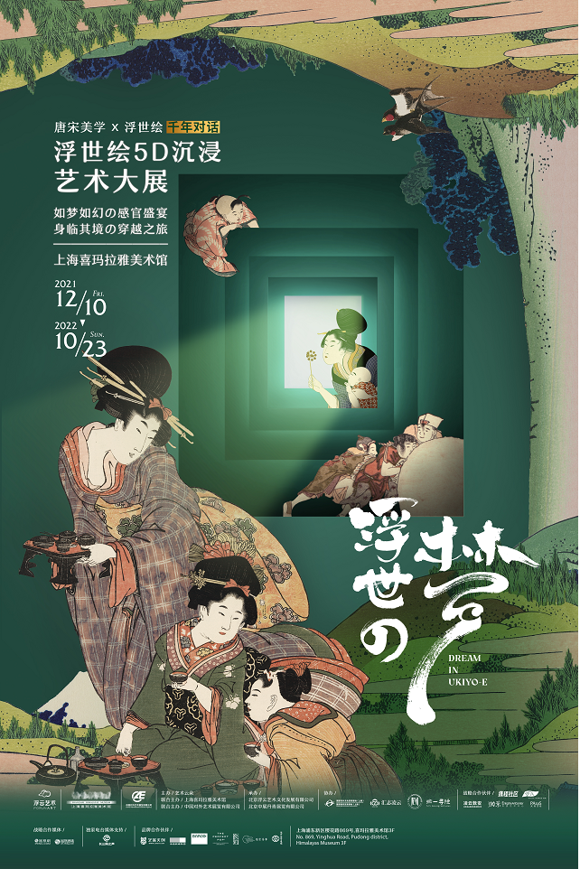 浮云艺术大型原创IP《浮世の梦》5D沉浸艺术大展•全球首展将于2021年12月至2022年3月在上海喜玛拉雅美术馆开展,本次展览是集视觉、听觉、触觉、嗅觉、味觉于一体的浮世绘5D沉浸艺术大展,将融合50多分钟原创数字艺术影像、近150幅浮世绘大师名作、80套高科技投影与特效设备、60多只环绕音响、2300平米全场景沉浸体验展览空间,深度呈现中国经典艺术、生活起居方式、著名文学作品、唐宋美学元素与浮世绘不同时期的艺术大师长达300多年的时空对话。