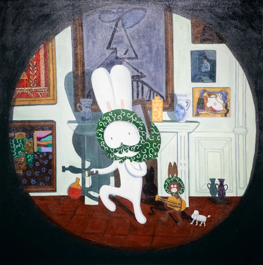 加贺温 乌萨奇和罗伯特从格特鲁德 · 斯泰因家里偷走艺术品 120x120x3cm 布面丙烯 2021