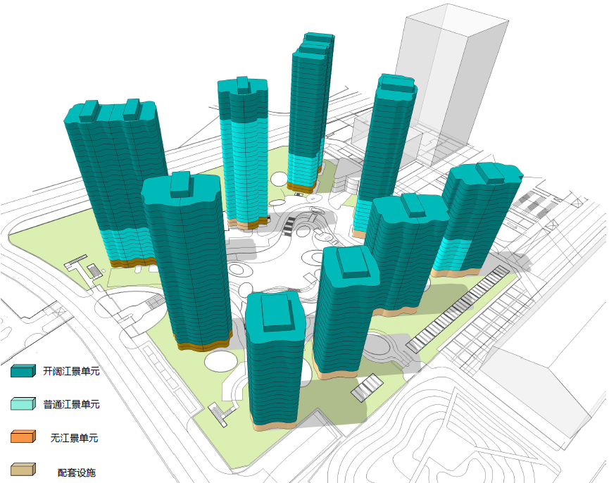 朱立琦:我们看到很多住宅设计,排楼的方式大多都是排排坐,做一个总体的花园,然后上面一个个地“插蜡烛" ,这样很容易就形成项目内部的遮挡。