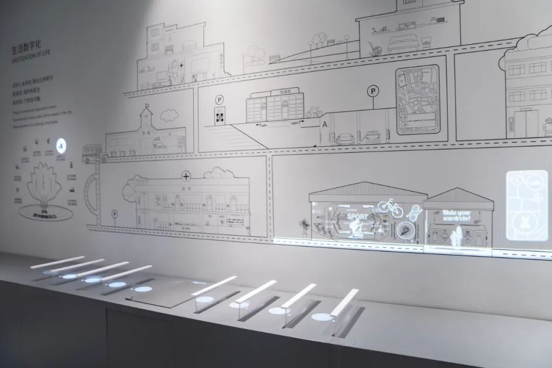 三楼是创新之城,讲了很多高科技的运用,中间有个5D沉浸式数字沙盘,目前还没有开放。