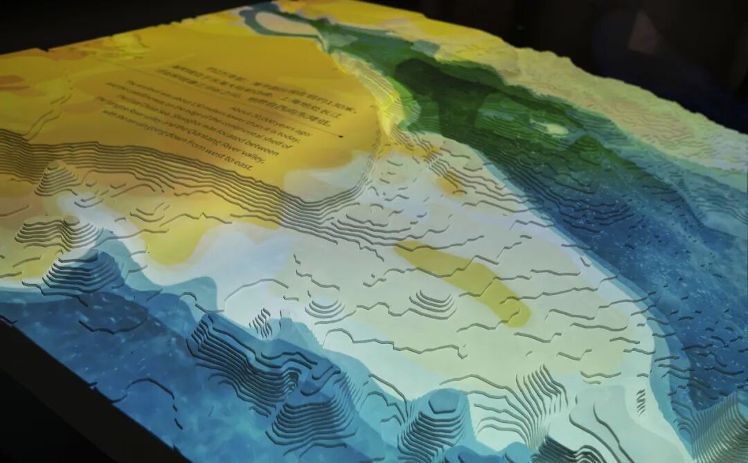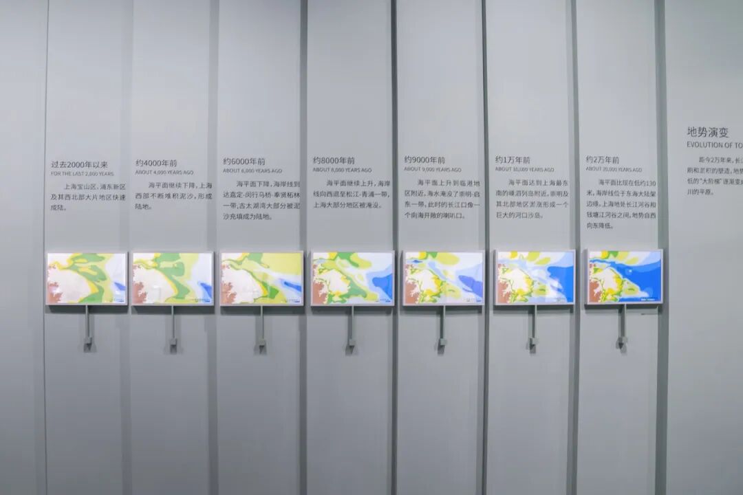 展示了不同时期上海的地质变化,扭动旁边的按钮会根据时间不同出现不同的色彩示意