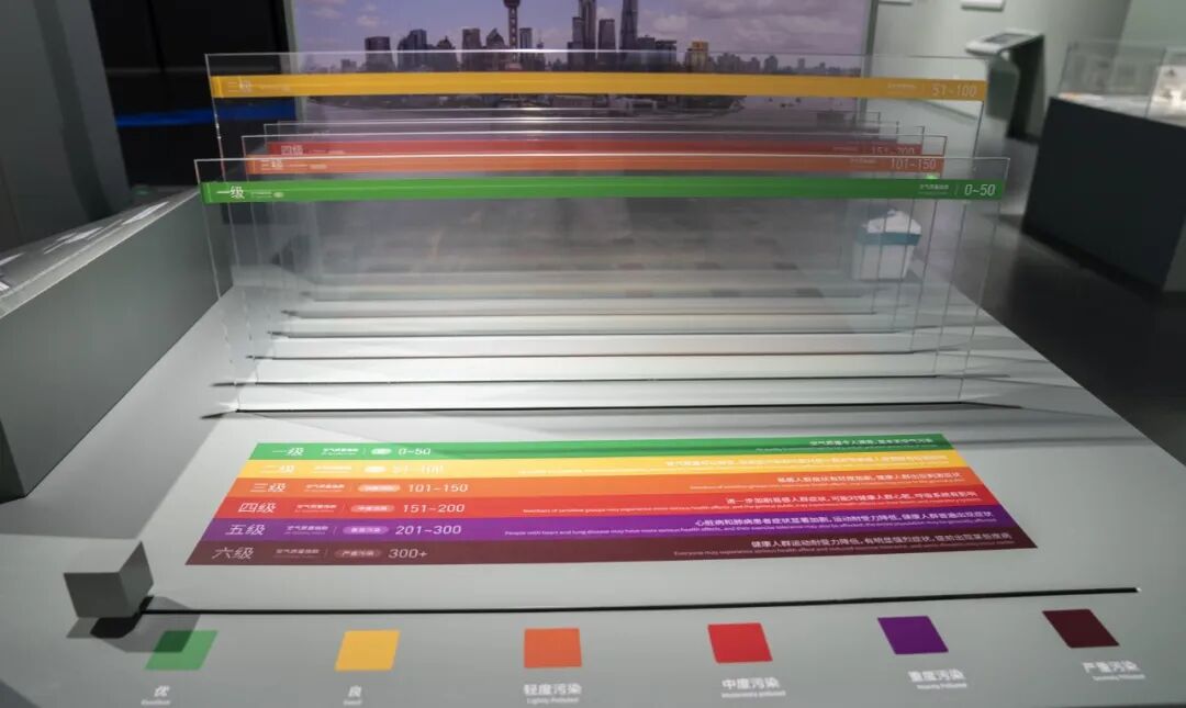 这个也是互动装置,移动下面的滑杆会有对应的空气指标板的升起